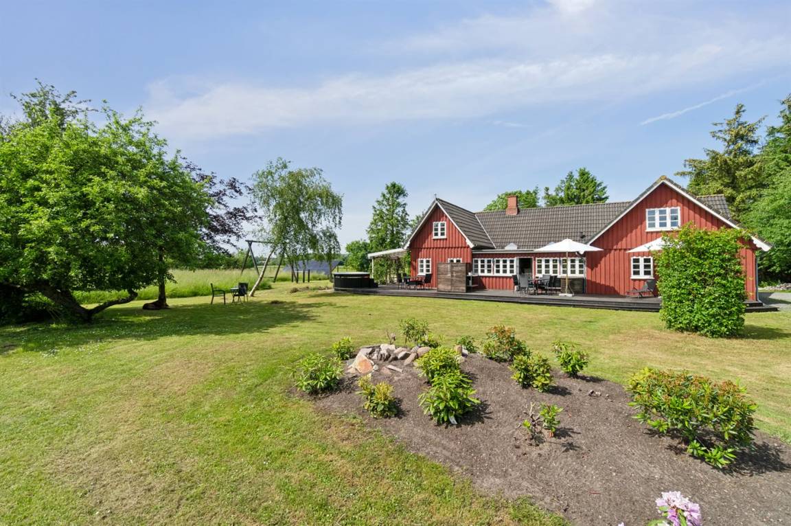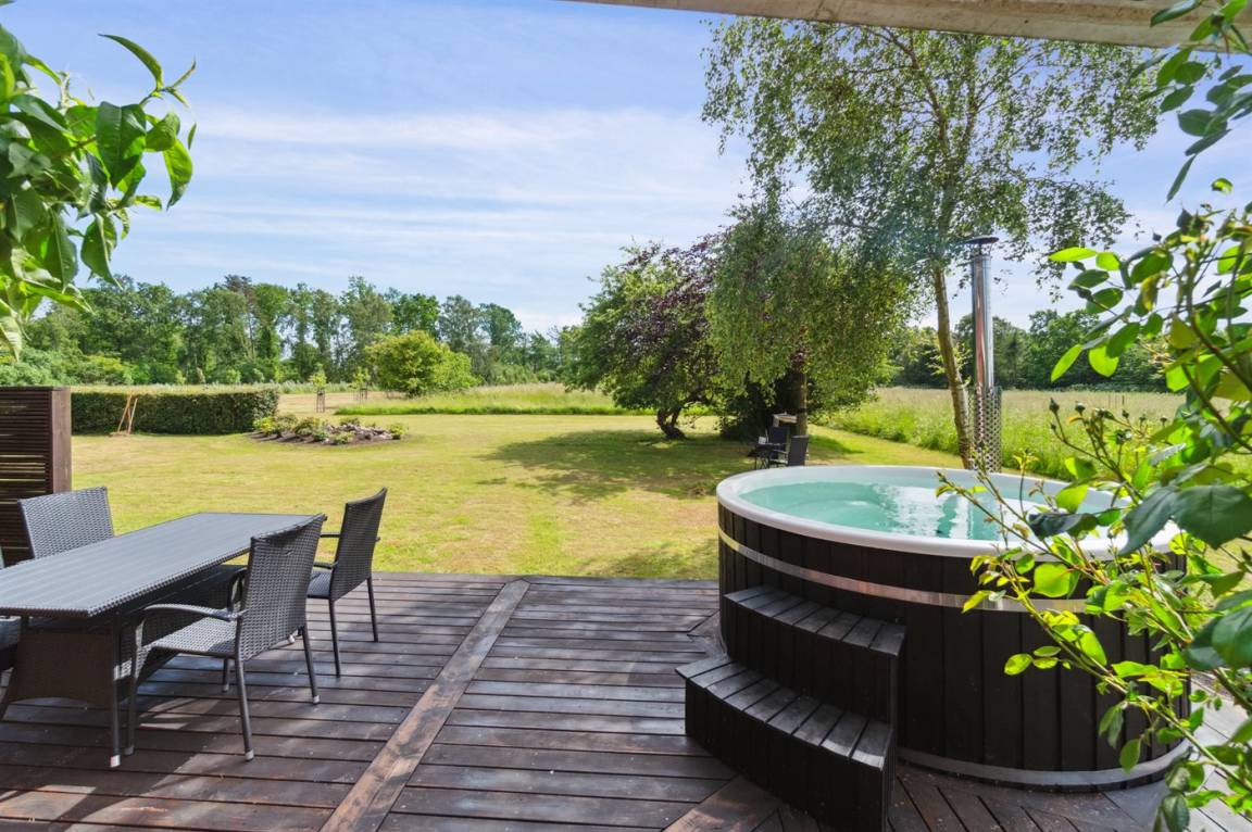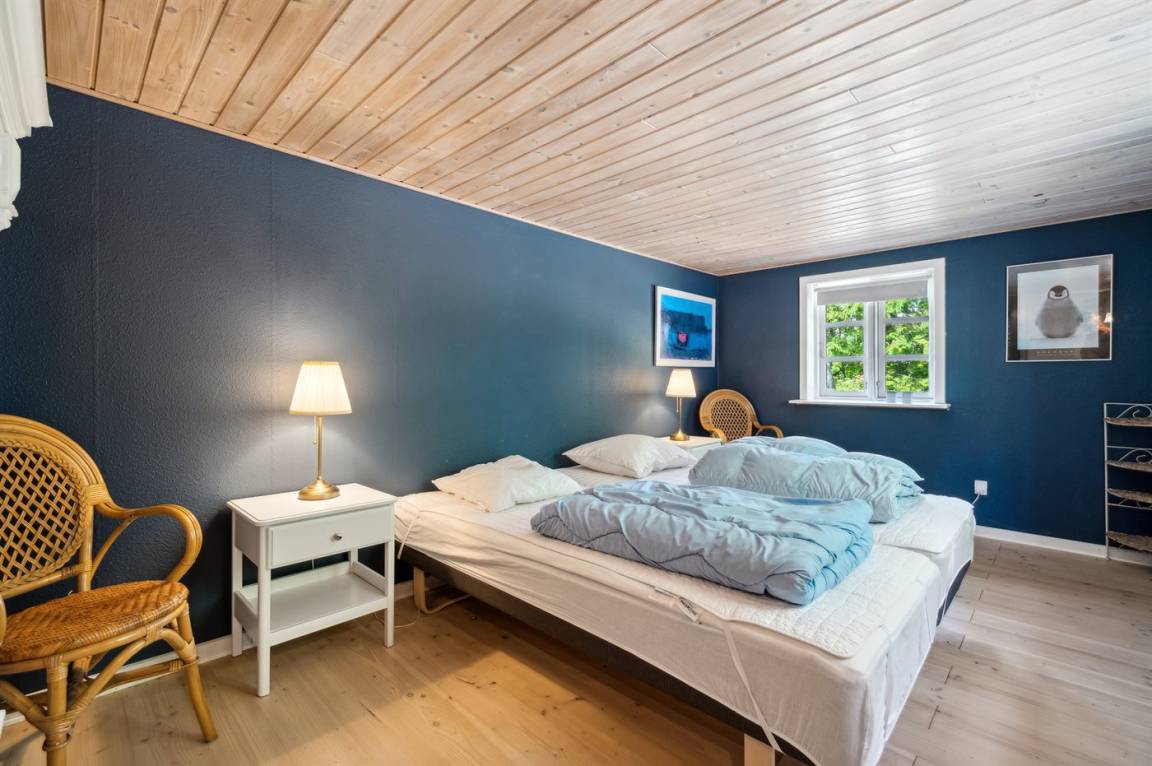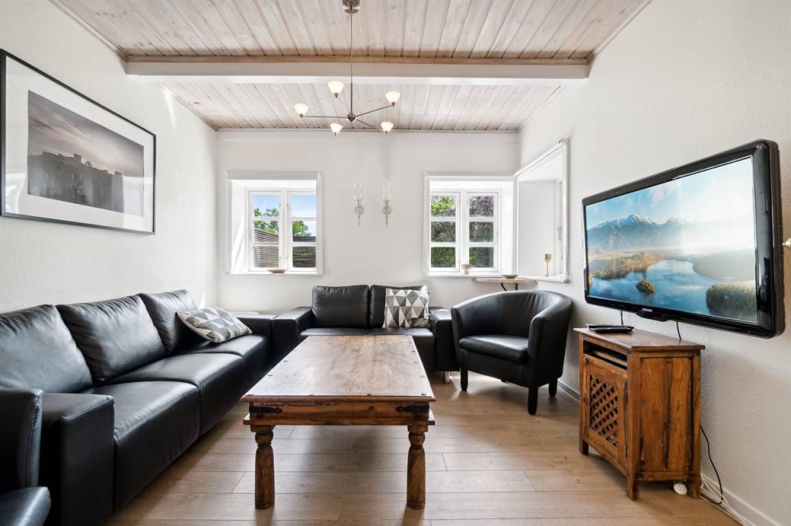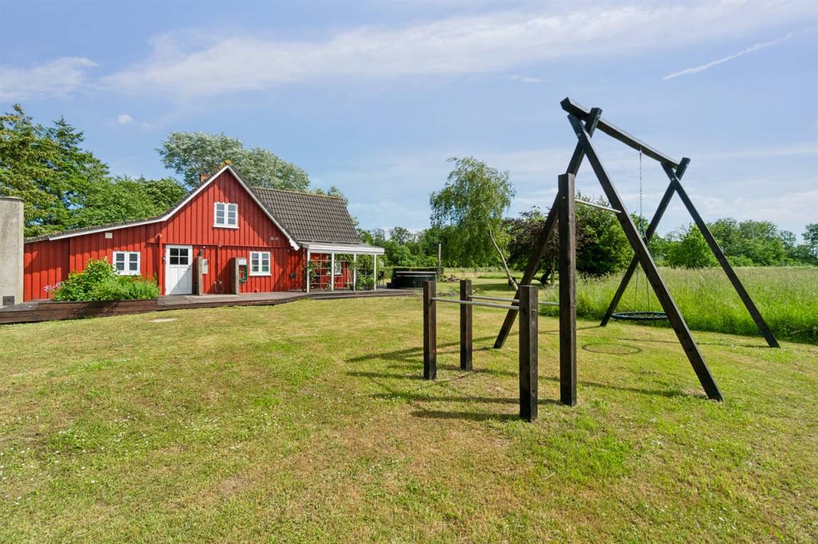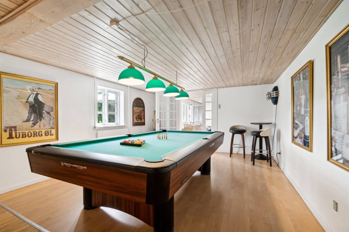 Das Ferienhaus liegt ruhig "auf dem Land" bei Aakirkeby mit Blick auf Felder und schöne Natur - oft mit Rehen, Hasen und Fasanen im Garten. Im separaten Aktivitätsraum gibt es Billard und Darts für die Aktiven, die gerne miteinander im Urlaub in edlen Spielen konkurrieren möchten. Das Grundstück ist groß, die Natur ist direkt vor der Tür und mit vielen Obstbäumen, großen Rasenflächen und wildem Naturgarten zum Nutzen für Bienen und Vögel. Hier ist weiterhin Aktivität mit Schaukeln und Trainingsgeräten angesagt, damit die Bauchmuskeln im Urlaub nicht zu kurz kommen. Zur Entspannung können die großen Holzterrassen genossen werden - sie sind teilweise überdacht.