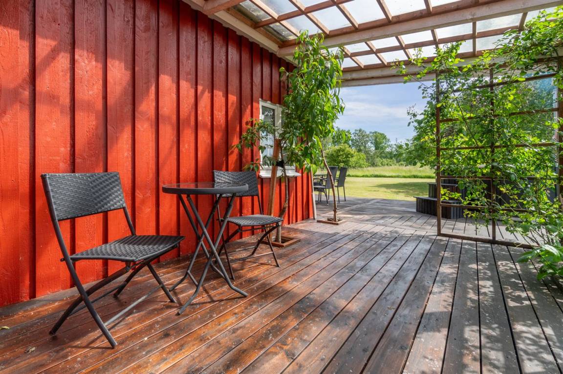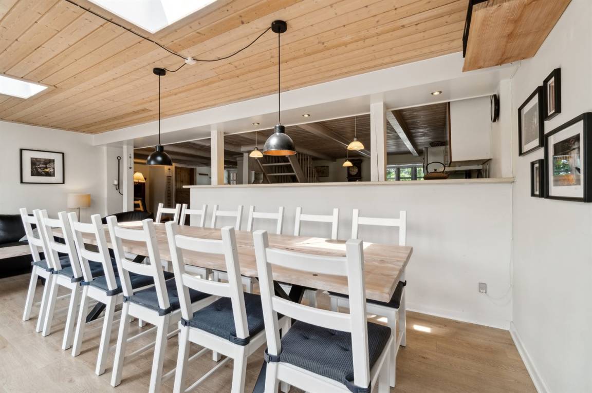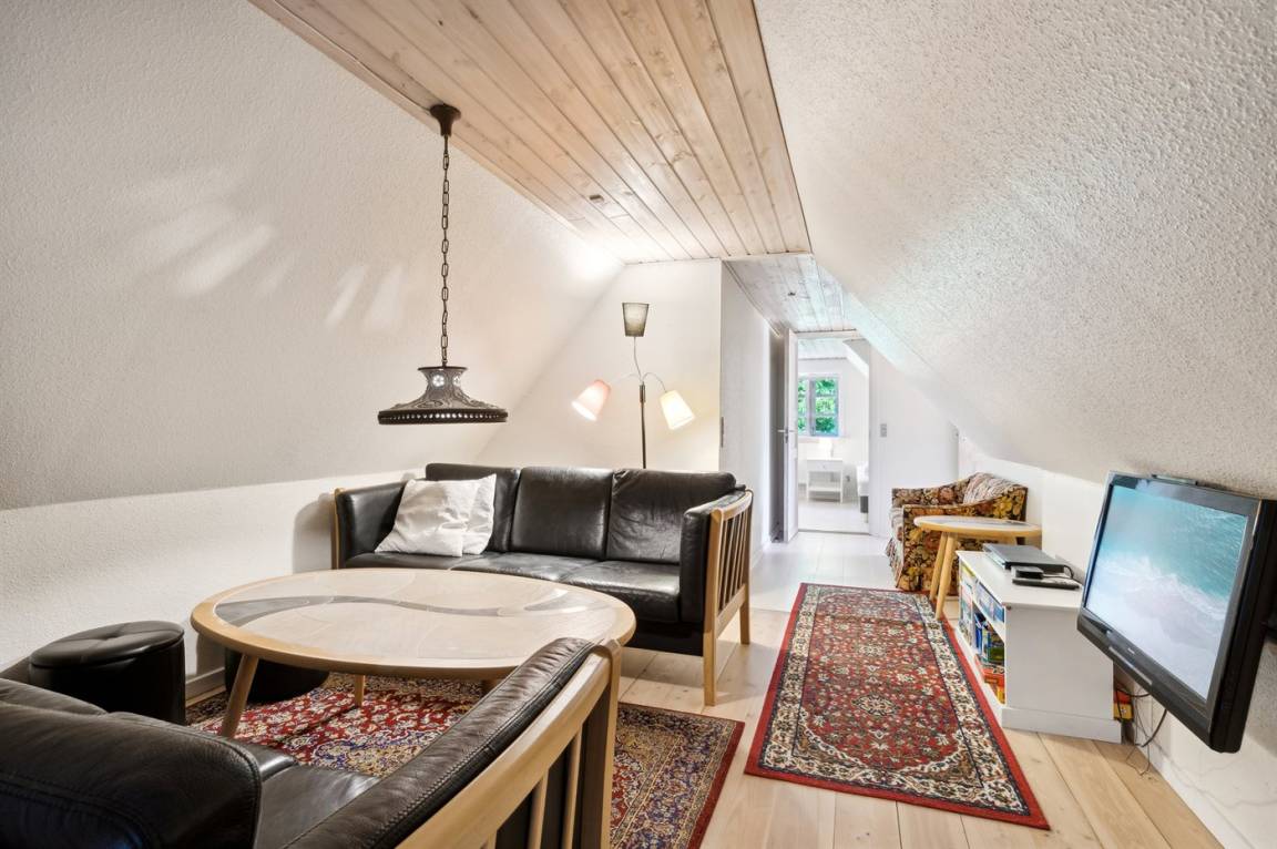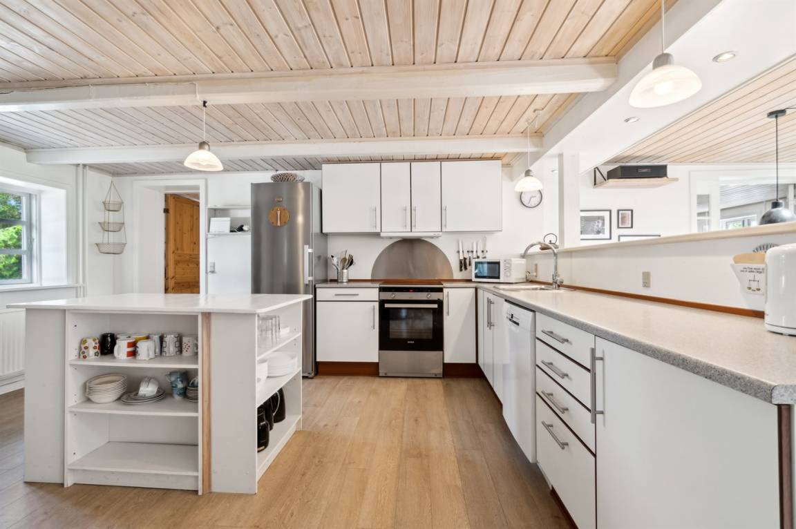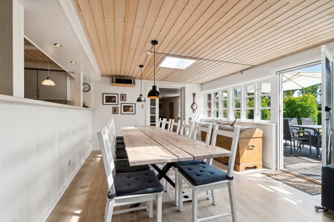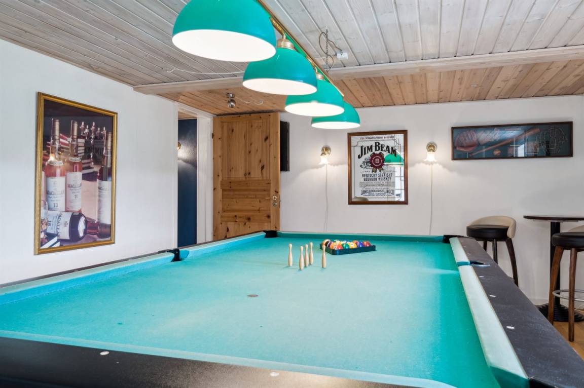 Das Ferienhaus liegt ruhig "auf dem Land" bei Aakirkeby mit Blick auf Felder und schöne Natur - oft mit Rehen, Hasen und Fasanen im Garten. Im separaten Aktivitätsraum gibt es Billard und Darts für die Aktiven, die gerne miteinander im Urlaub in edlen Spielen konkurrieren möchten. Das Grundstück ist groß, die Natur ist direkt vor der Tür und mit vielen Obstbäumen, großen Rasenflächen und wildem Naturgarten zum Nutzen für Bienen und Vögel. Hier ist weiterhin Aktivität mit Schaukeln und Trainingsgeräten angesagt, damit die Bauchmuskeln im Urlaub nicht zu kurz kommen. Zur Entspannung können die großen Holzterrassen genossen werden - sie sind teilweise überdacht.