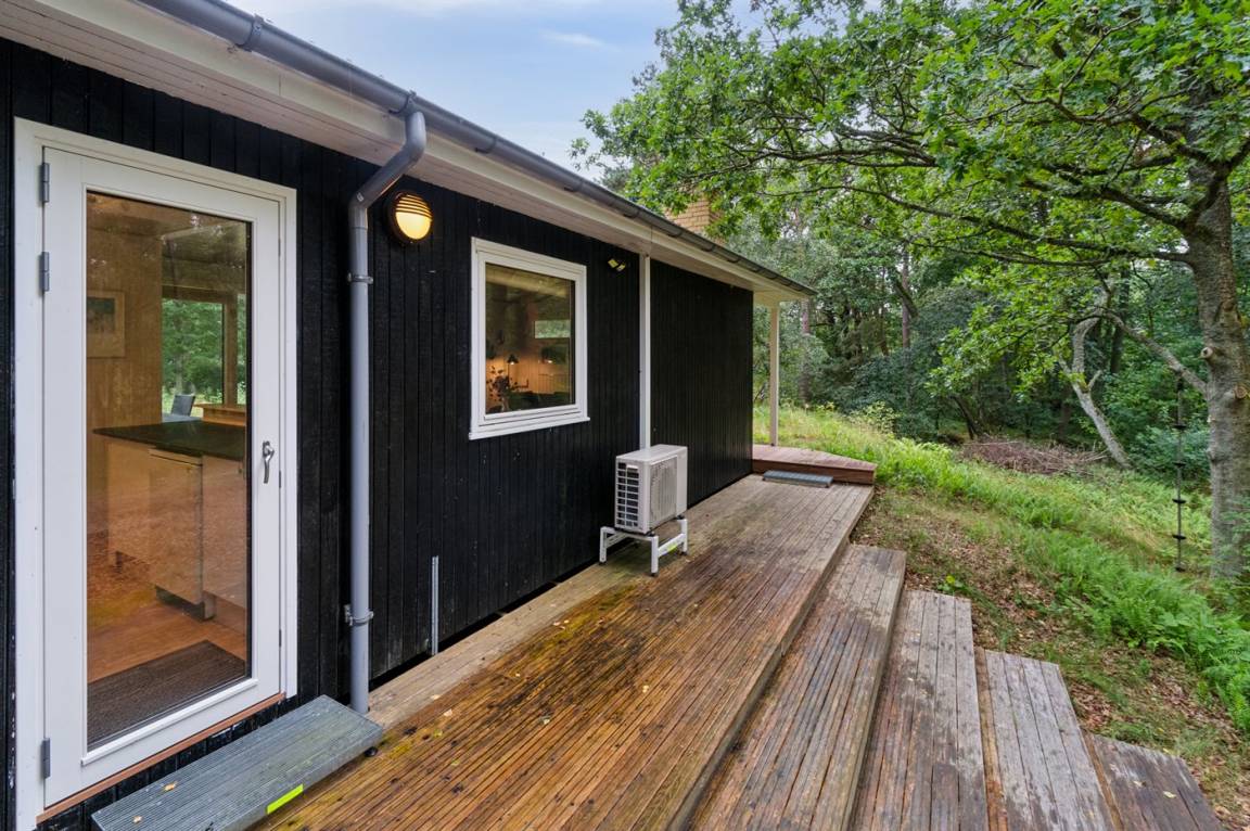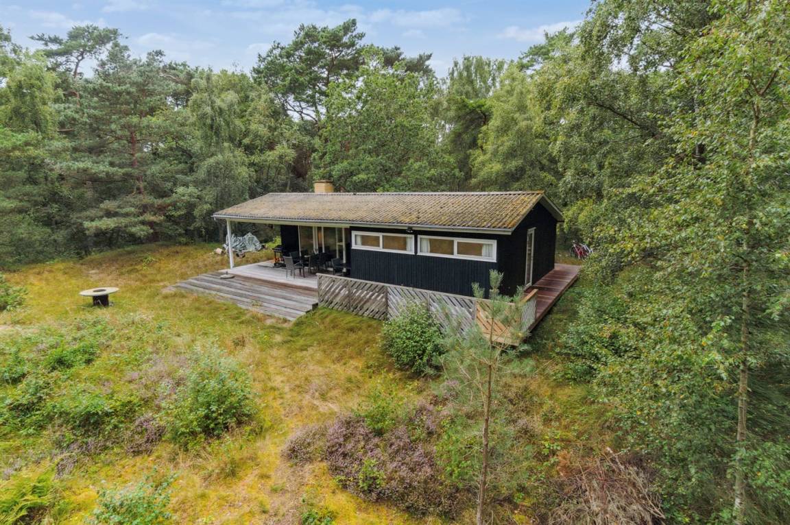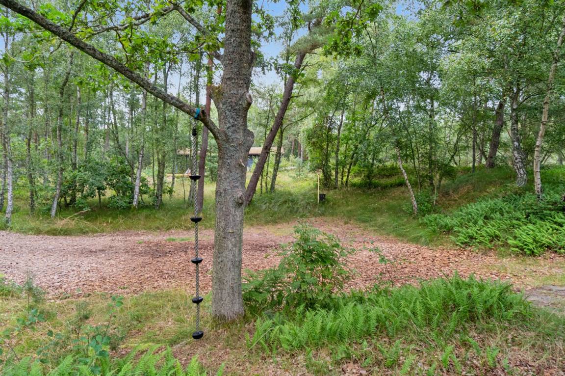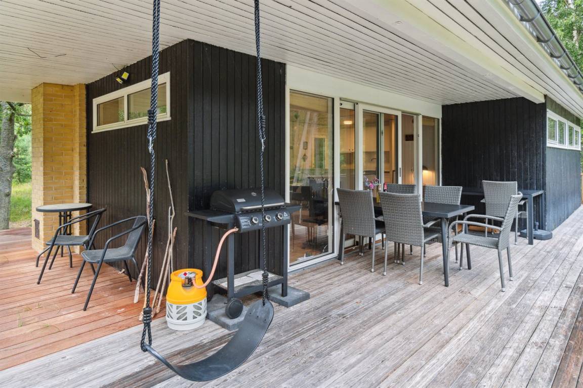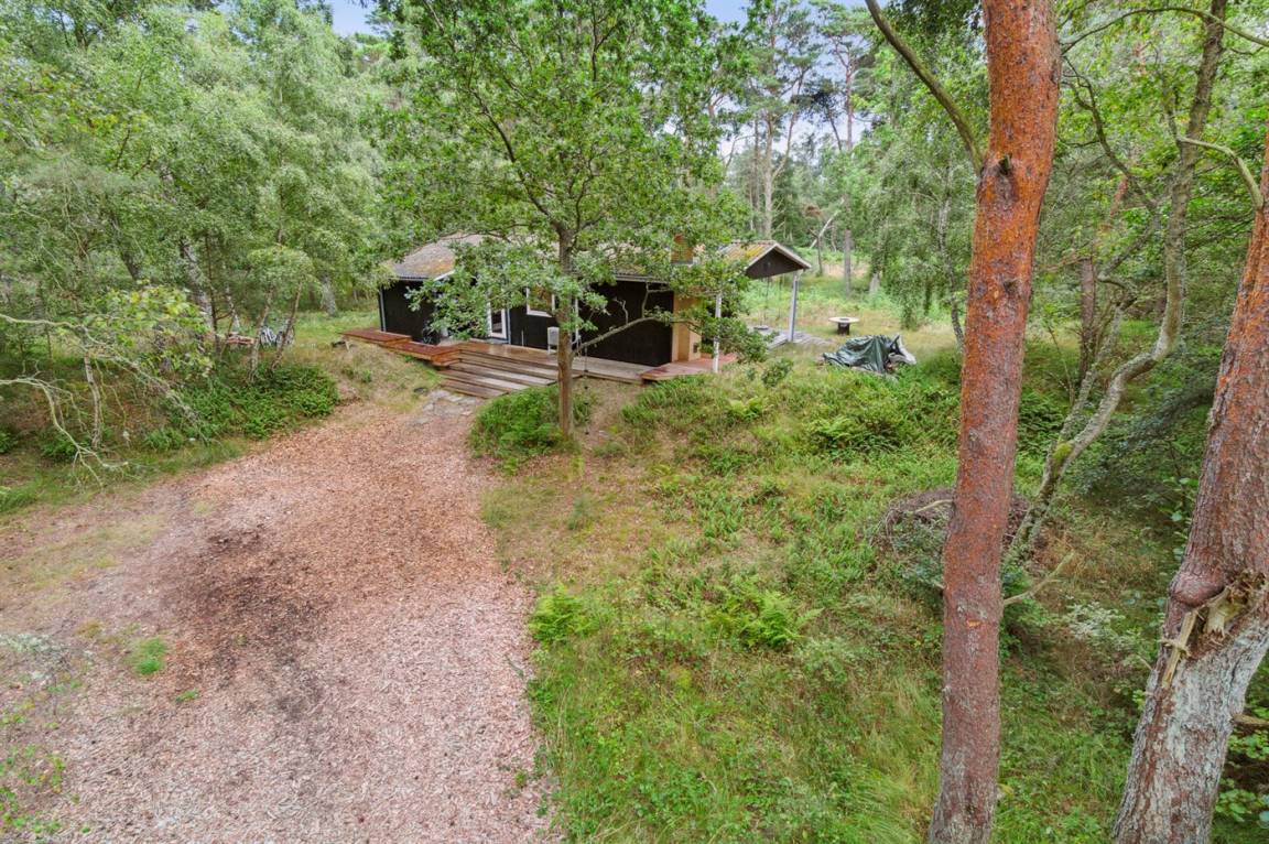 Das Ferienhaus befindet sich auf einem großen Naturgrundstück, geprägt von der Dünenlandschaft und dem Meer, das nur 120 Meter entfernt ist. Ein kleiner Pfad führt direkt zur Ostsee, die man auch vom Haus aus sehen kann. Der natürliche Treffpunkt des Hauses ist die nach Süden ausgerichtete Terrasse, die teilweise überdacht ist und mit Gartenmöbeln und einem Grill ausgestattet ist. Es gibt eine Terrasse rund um das ganze Haus. Von der nach Süden und Westen ausgerichteten Terrasse kannst du die Aussicht über das große Naturgrundstück und das Meer genießen.