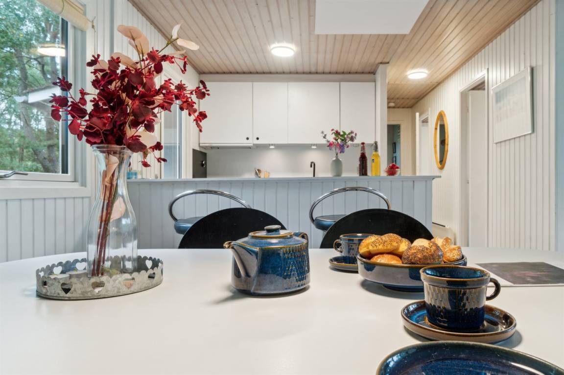 Im „Strandpalæet", das im Aspegårdsskoven liegt, bist du dem Meer und der Natur ganz nah. Das Haus ist in einem hellen, nordischen und minimalistischen Stil eingerichtet, und das helle Wohnzimmer hat große Fensterfronten zum Meer hin, sodass die Natur dir nahe ist, egal ob du drinnen oder draußen bist.
