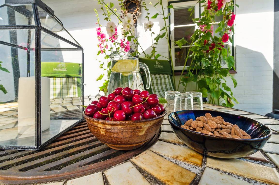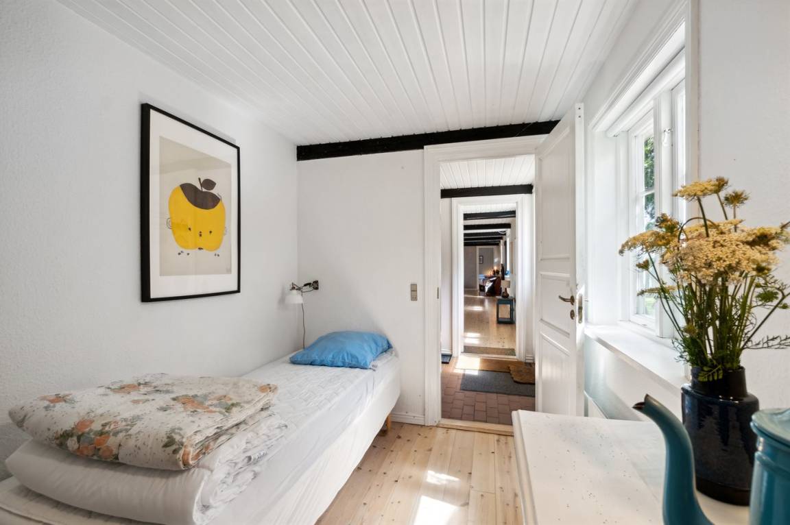 Der Garten des Ferienhauses ist zur Straße hin abgeschlossen, und du bekommst die Natur hautnah. Es gibt Platz für Spiel und Gemütlichkeit im großen sonnigen und nach Süden ausgerichteten Garten. Alles strahlt Ruhe und Ruhe aus, und das Grundstück wird von Feldern und offenen Flächen eingerahmt. Das Spielen im dazugehörigen kleinen Naturwald erfolgt auf eigene Gefahr. Auf der anderen Straßenseite findest du die Attraktion "Jættedal", während die gemütliche Hafenumgebung in Boderne Einkaufsmöglichkeiten, Eis und weiße Sandstrände bietet.
