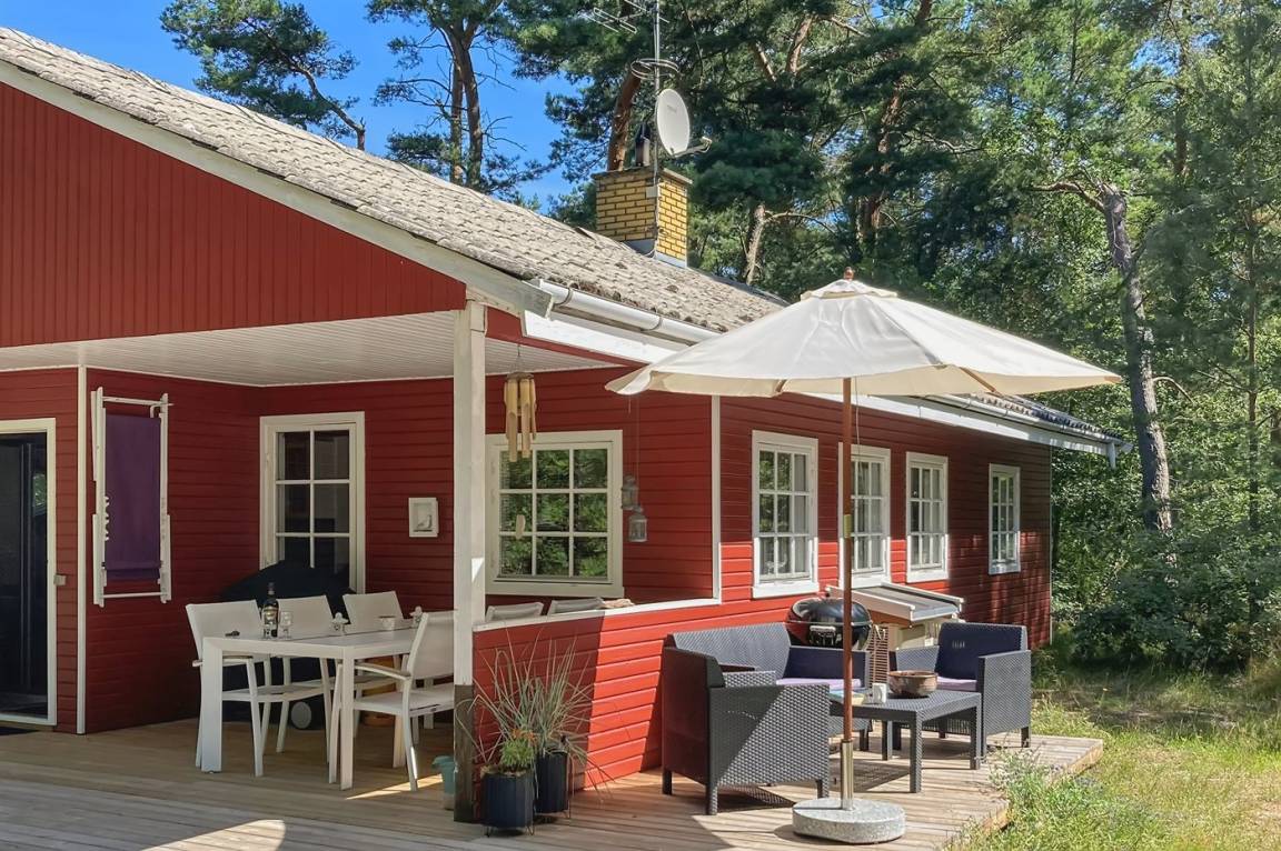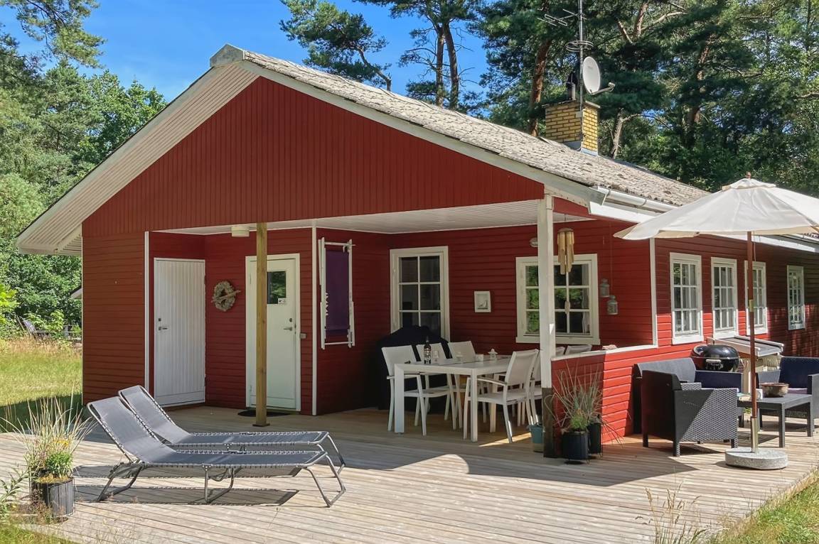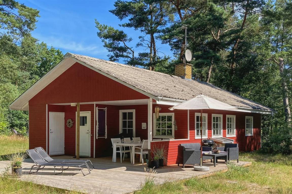 Dieses nette und gepflegte Ferienhaus liegt in einem ruhigen Ferienhausgebiet – auf einem mit Kiefern bewachsenen Grundstück.
