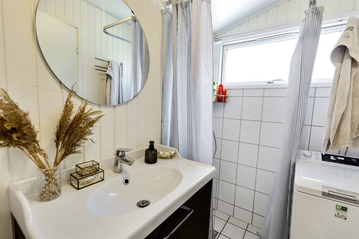 In einem ruhigen Ferienhausgebiet, nah am schönen Sandstrand und der Räucherei "Bakkarøgeriet", finden Sie dieses Ferienhaus.