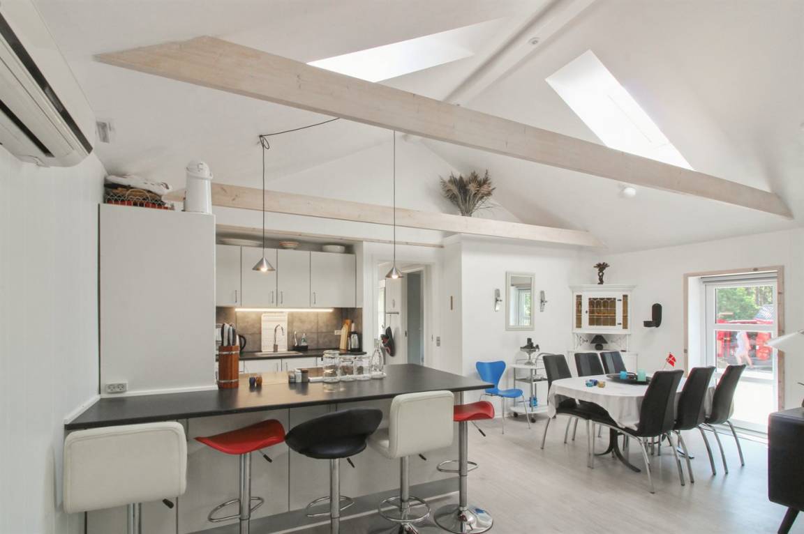 Wirklich schönes Ferienhaus aus Stein mit einem schönen holzverkleideten Anbau. Große Terrassen umgeben einen Großteil des Hauses und eine überdachte Terrasse mit schöner Möblierung - Esstischanordnung und Lounge-Set, damit man den ganzen Tag draußen in der Sonne genießen kann. Das Haus wurde kontinuierlich renoviert, neues Badezimmer (2025), und mit dem Ausbau des schönen Wintergartens (2023), der beheizt ist, erweitert. Das Hauptschlafzimmer ist besonders geräumig. Alles wirkt wirklich gepflegt und einladend.