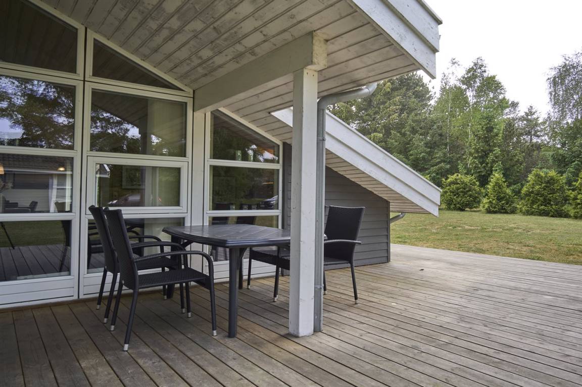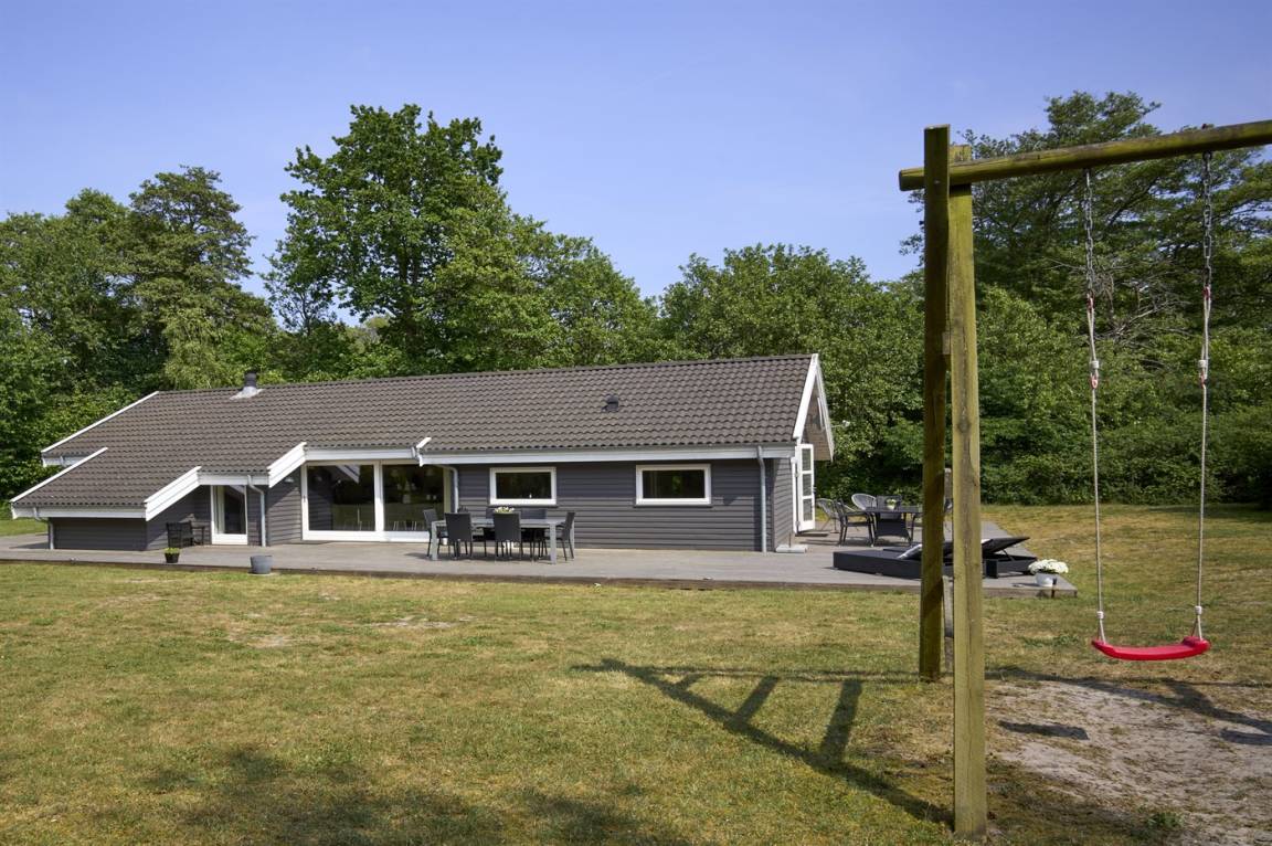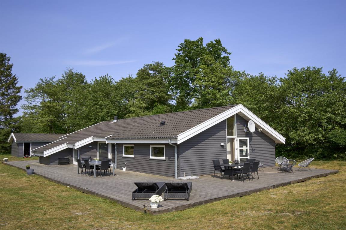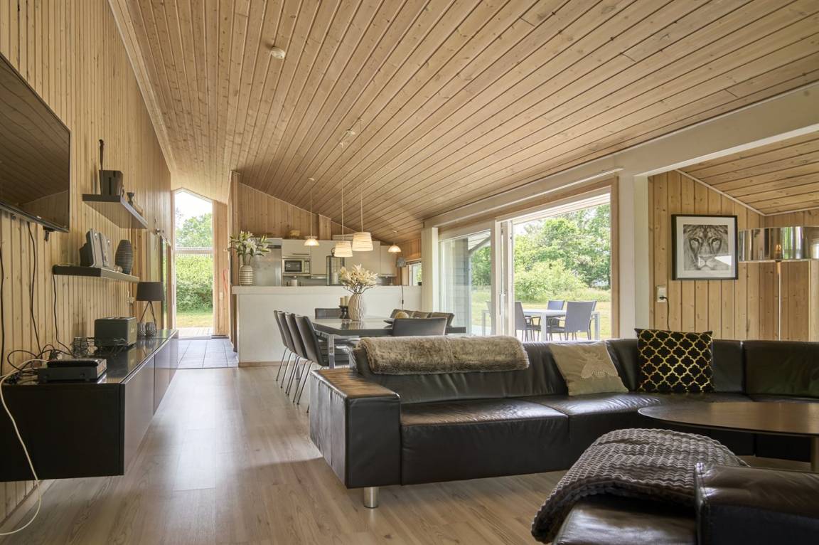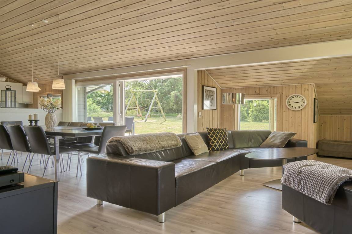 Neben dem großen, hellen Wohnzimmer mit Essbereich und einer gut ausgestatteten, offenen Küche findest du gemütliche Schlafzimmer, die alle mit Betten mit Boxmatratzen ausgestattet sind. Die absoluten Mittelpunkte des Hauses sind der große Wohn- und Essbereich sowie die schöne Terrasse, die sich an drei Seiten des Hauses erstreckt. Auf der Terrasse gibt es gute Gartenmöbel und einen Grill.