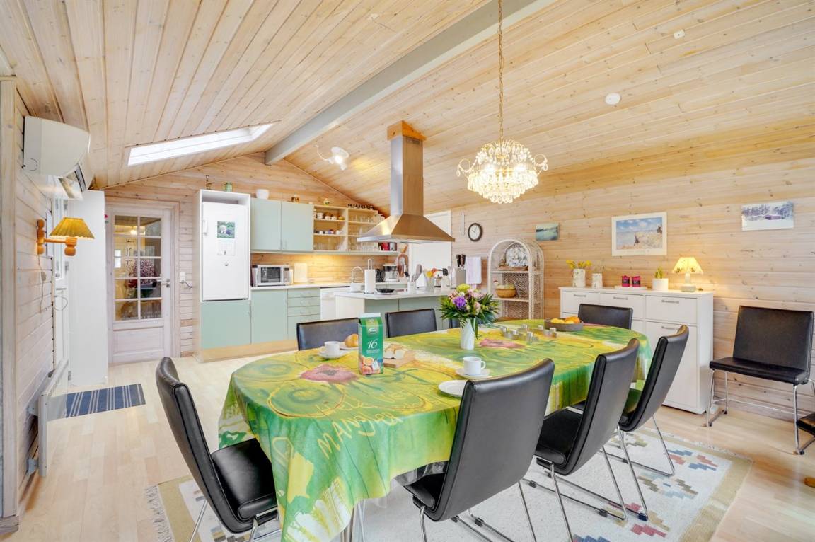 EinrichtungDas Ferienhaus eignet sich für 8 Personen sowie 1 Kleinkind bis zu 3 Jahren. Die Ferienunterkunft hat eine Wohnfläche von 120 m² und wurde 1967 gebaut. 2001 wurde die Ferienunterkunft teilweise renoviert. Es ist erlaubt 2 Haustiere mitzubringen. In der Ferienunterkunft ist eine energiesparender Luft zu Luft Wärmepumpe installiert. Fußbodenheizung im Wohnzimmer. Die Ferienunterkunft ist mit Waschmaschine ausgestattet. Wäschetrockner. Tiefkühlmöglichkeit mit 60 Liter Nutzinhalt. Es gibt außerdem einen Kaminofen. Für die jüngsten Feriengäste ist 1 Kinderhochstuhl vorhanden.