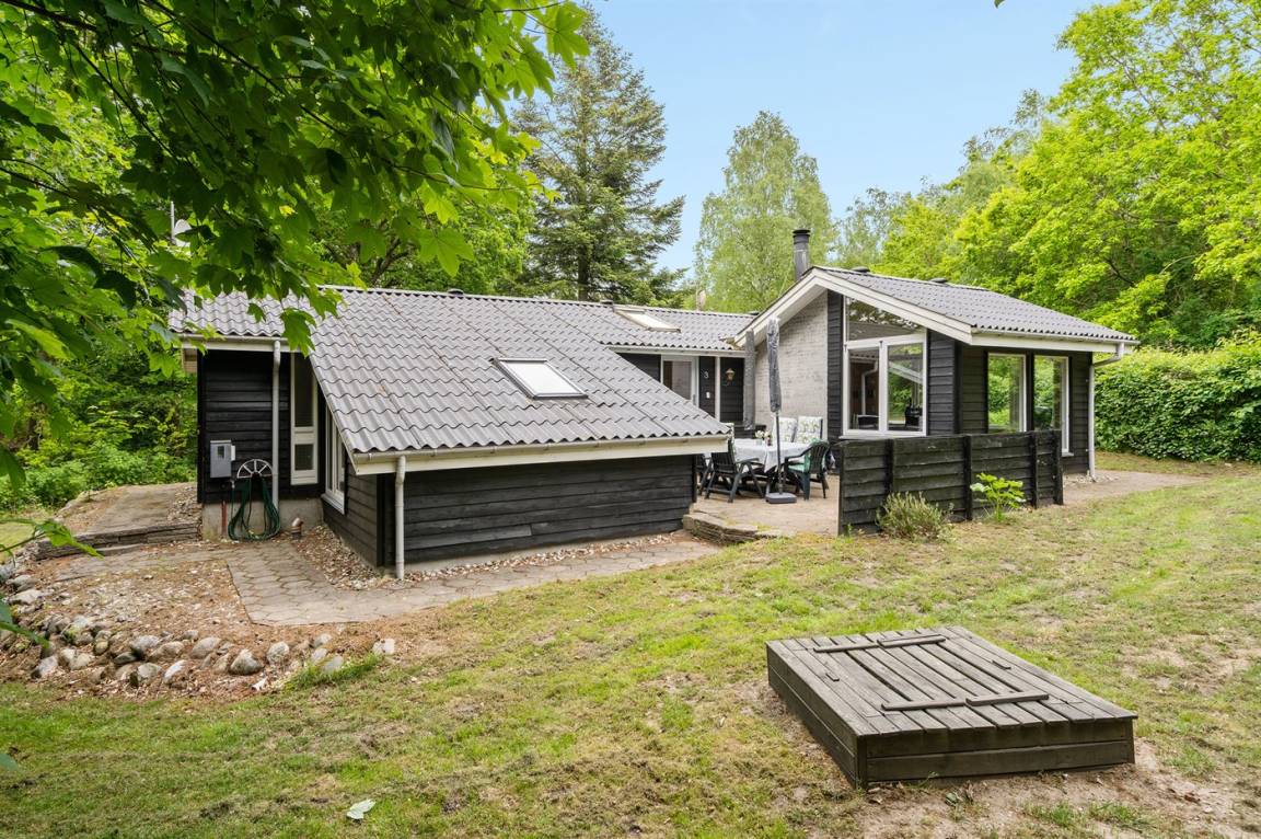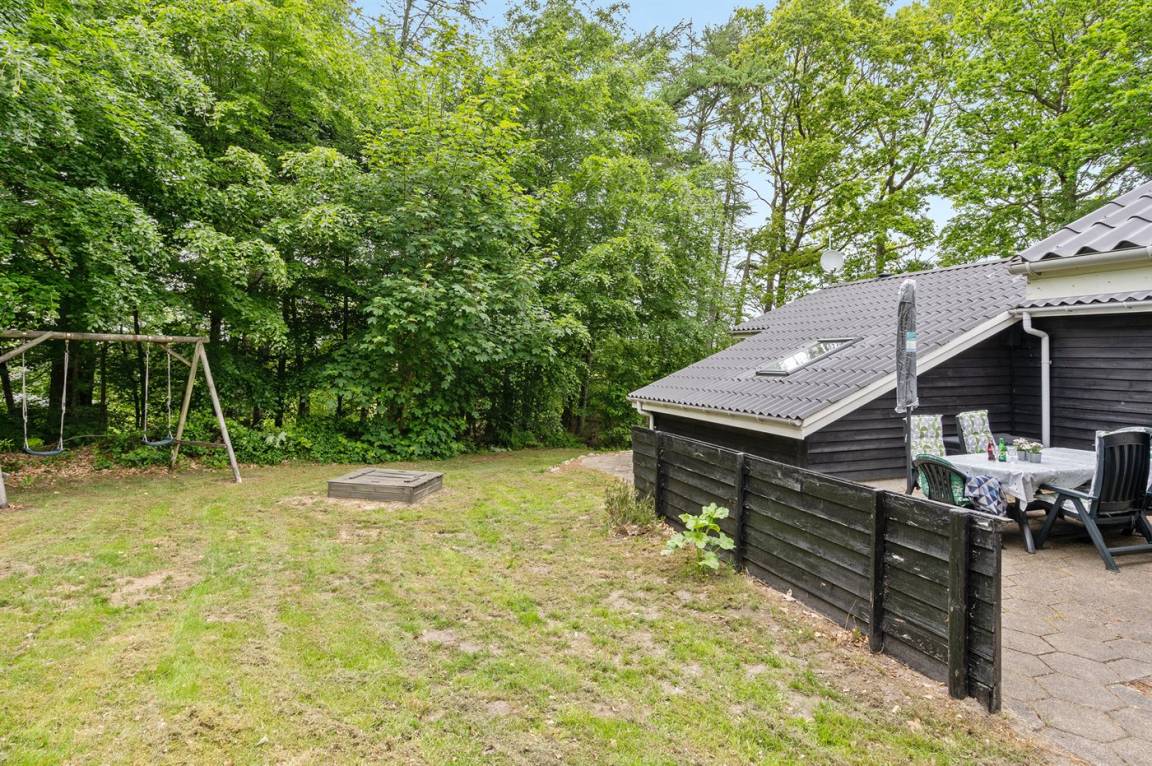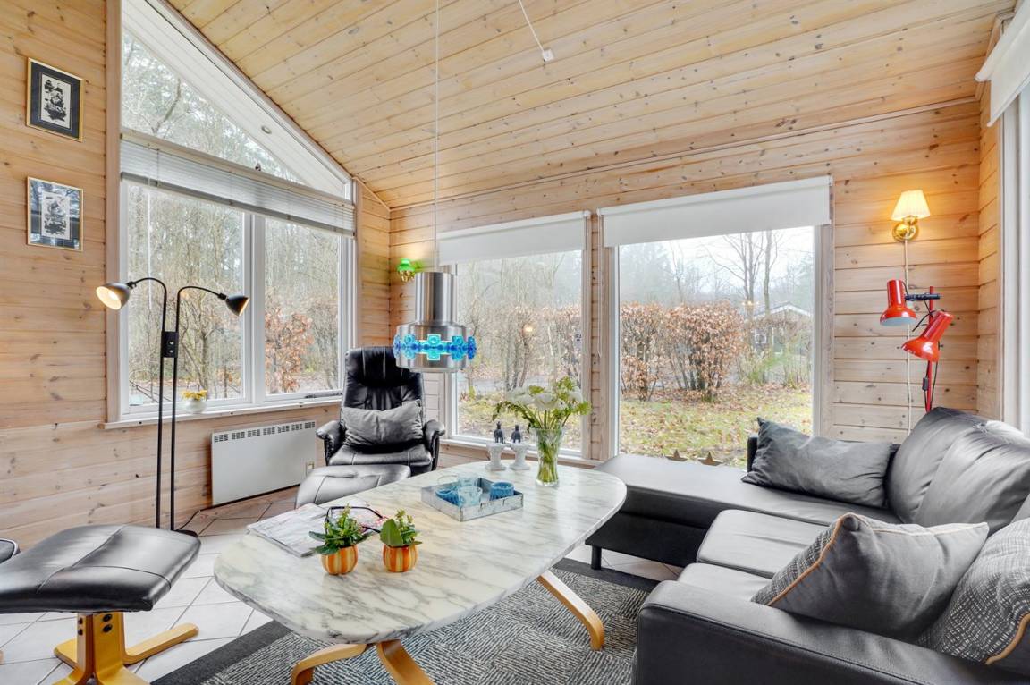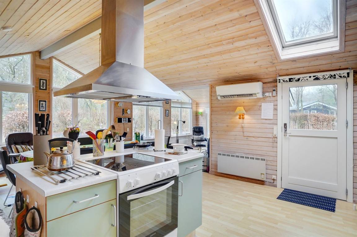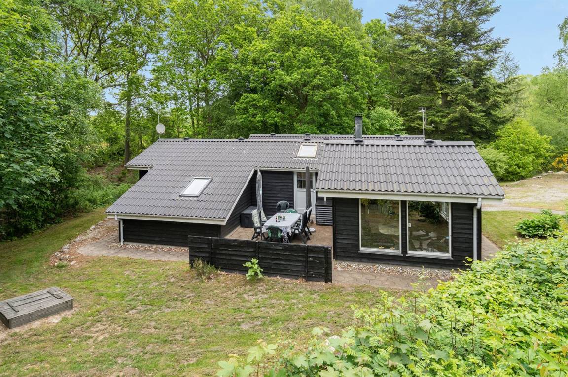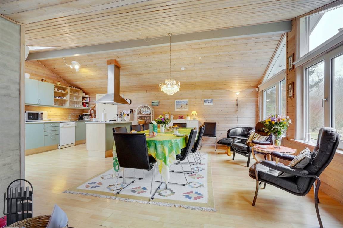 Dieses schöne Ferienhaus liegt auf einem großen Wald-/Naturgrundstück in Gatten, in der Mitte von dem ruhigen und naturschönen Limfjordsland. Innen tritt das Haus mit den großen Panoramafenstern hell und freundlich vor. Das in versetzter Ebene liegende Wohnzimmer hat schrägende Deckenbalken. Außerdem gibt es ein offenes Obergeschoss mit 1 Schlafplatz auf einer Matratze.