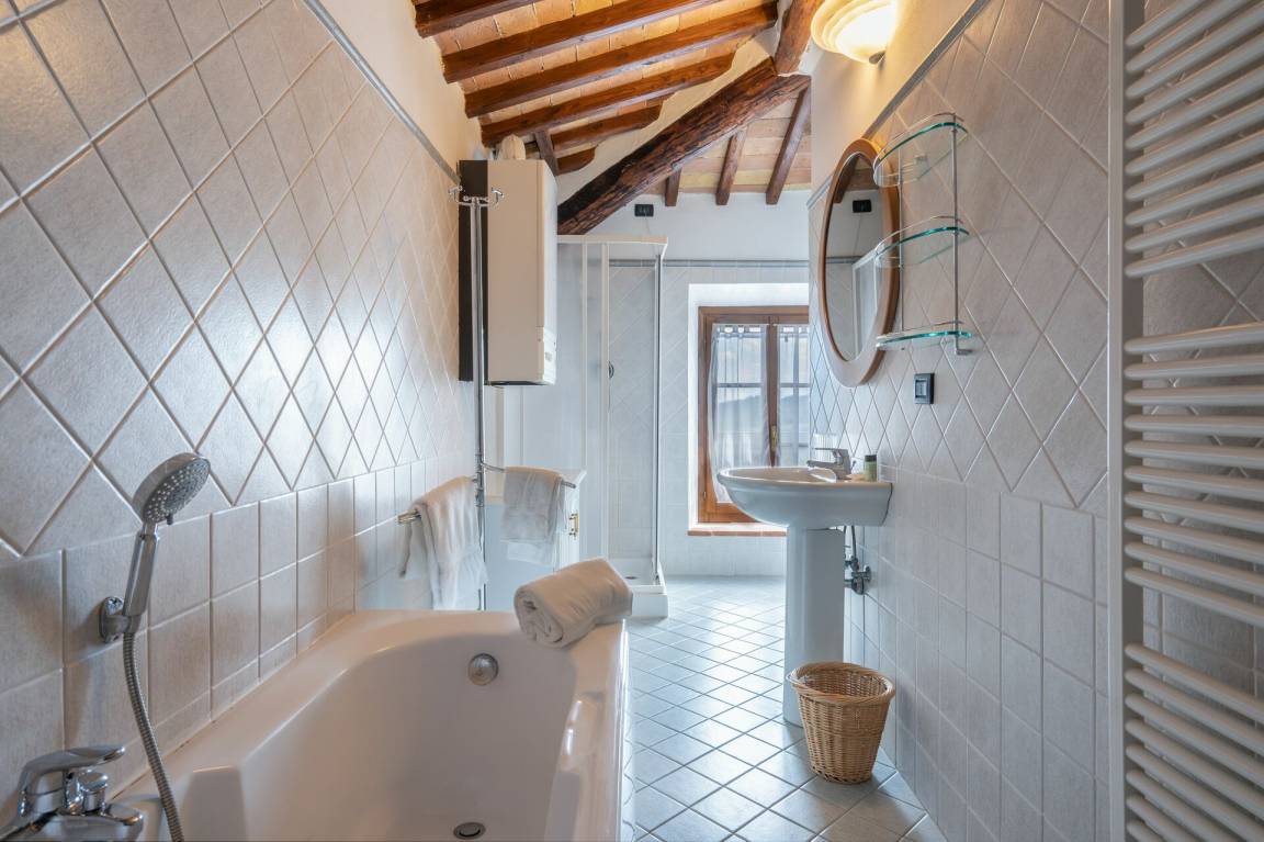 Appartamento Glicine In Siena, Pool Use, Ac (120 m²) ist eine zwei-Zimmer Wohneinheit, die auf eins Stockwerk gebaut ist, mit zwei Badezimmern. Hier können bis zu fünf Gäste schlafen. Einige Zimmer sind für Ihren Komfort mit Klimaanlage ausgestattet (siehe bitte die Zimmer Einzelheiten hier unten).