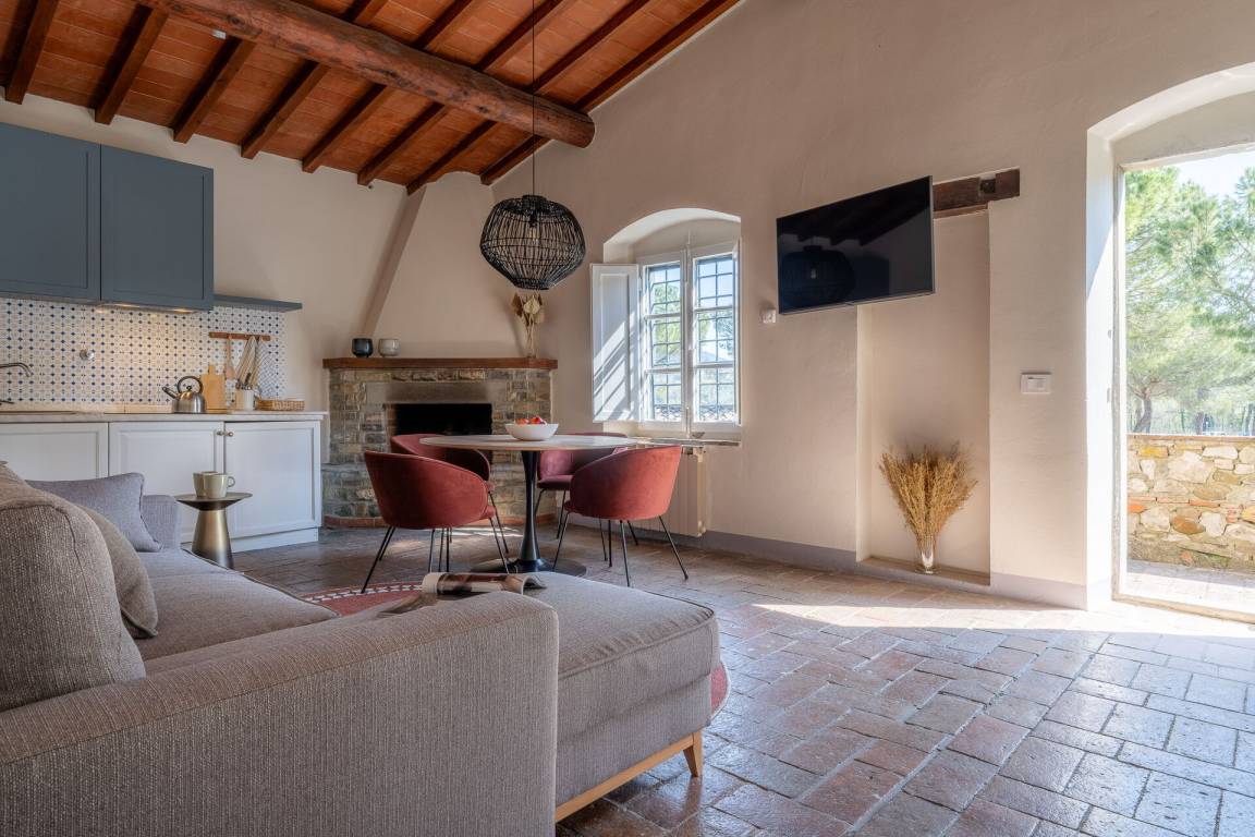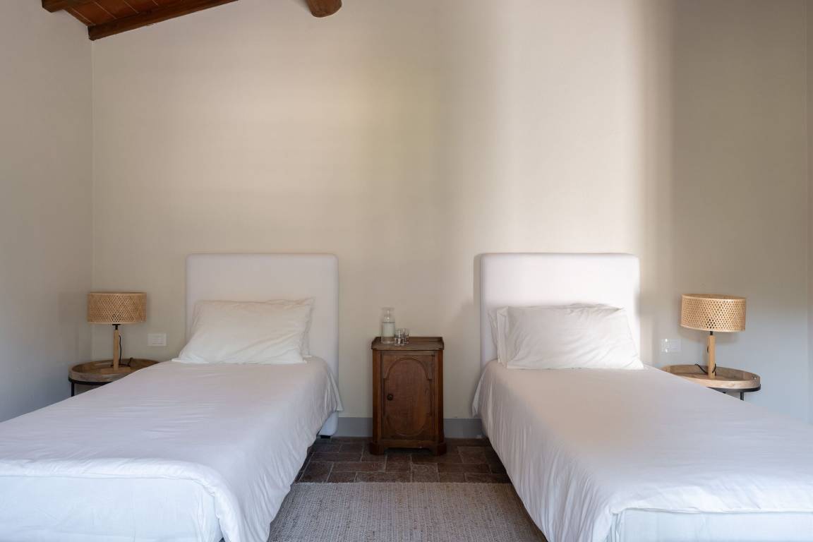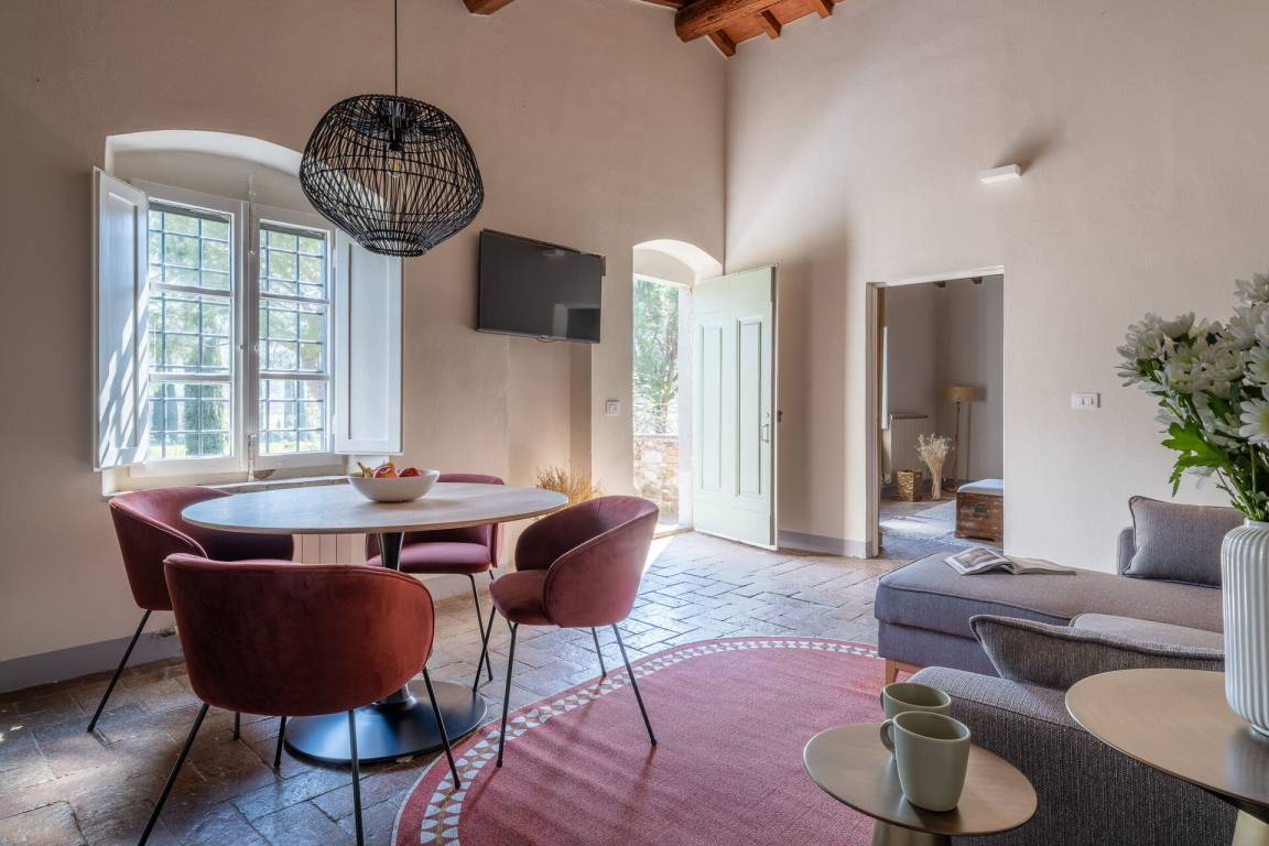 Relais Badia a Passignano - Appartamento Garnacha (90 m²) ist eine drei-Zimmer Wohneinheit, die auf eins Etage gebaut ist, mit zwei Badezimmern. Hier können bis zu sechs Leute schlafen.