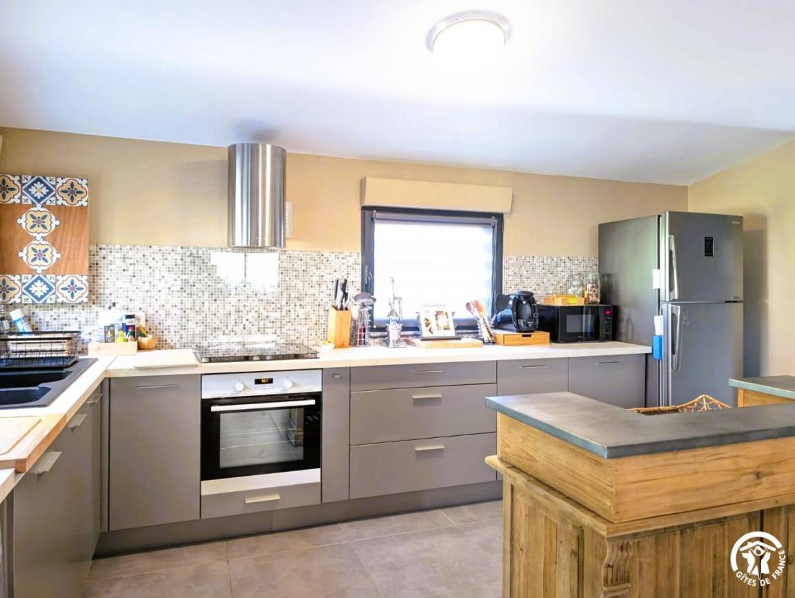 „Gîte super équipé, très bien aménagé et très agréable à vivre. Parfait pour 2 familles avec des enf6, même en bas âge (jardin à la bonne taille, avec de l'ombre et des jeux pour les petits) On recommande !“