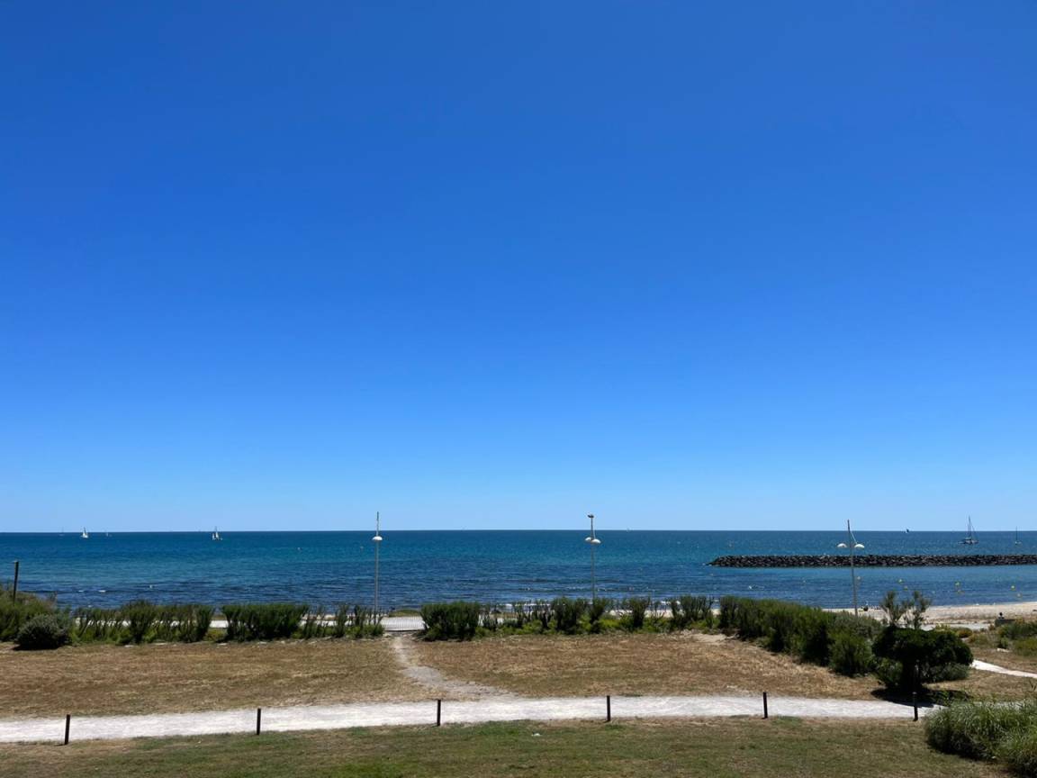 „J'ai passé un excellent séjour. Ce logement a été un véritable coup de cœur pour moi. Il est très bien situé. Et le fait qu'il n'y ait pas de route qui passe devant l'immeuble du coup aucun bruit de voiture, c'est très agréable. L'appartement est grand, lumineux avec une vue magnifique sur la mer, très agréable le matin au réveil. Et la plage est à deux pas. Et surtout la climatisation est un vrai plus. Seul petit bémol mais indépendant des propriétaires, internet ne passe pas très bien. Mais je recommande vraiment ce logement“