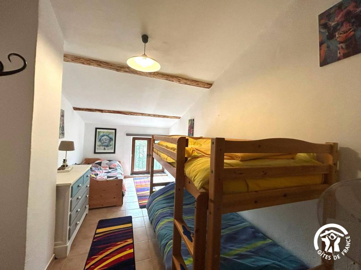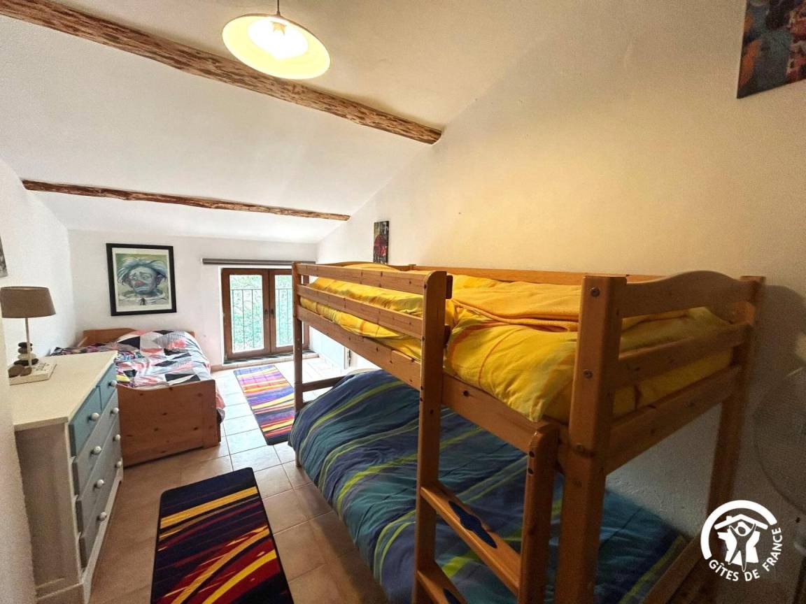 Schlafzimmer 3: Etagenbett (90 x 190 cm) + Ausziehbett (Möglichkeit für zwei weitere Kinder; bitte informieren Sie das Buchungszentrum).