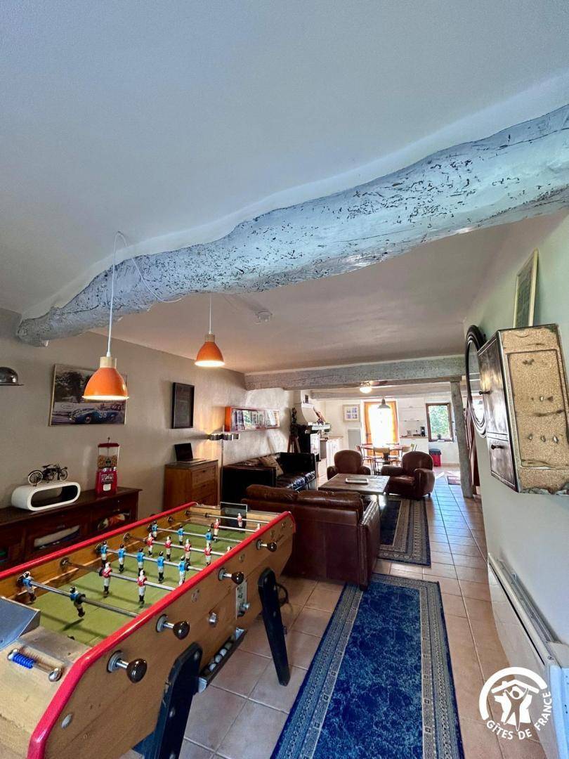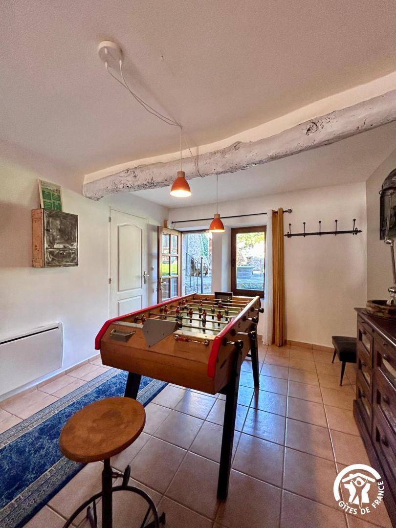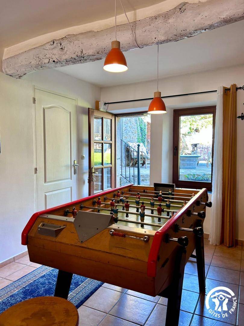 Im Erdgeschoss finden Sie eine voll ausgestattete offene Küche (Backofen, Mikrowelle, Kapselkaffeemaschine), ein gemütliches Esszimmer, ein Wohnzimmer mit Smart-TV und Tischfußball, ein Duschbad und ein separates WC. Im Obergeschoss befinden sich drei Schlafzimmer: