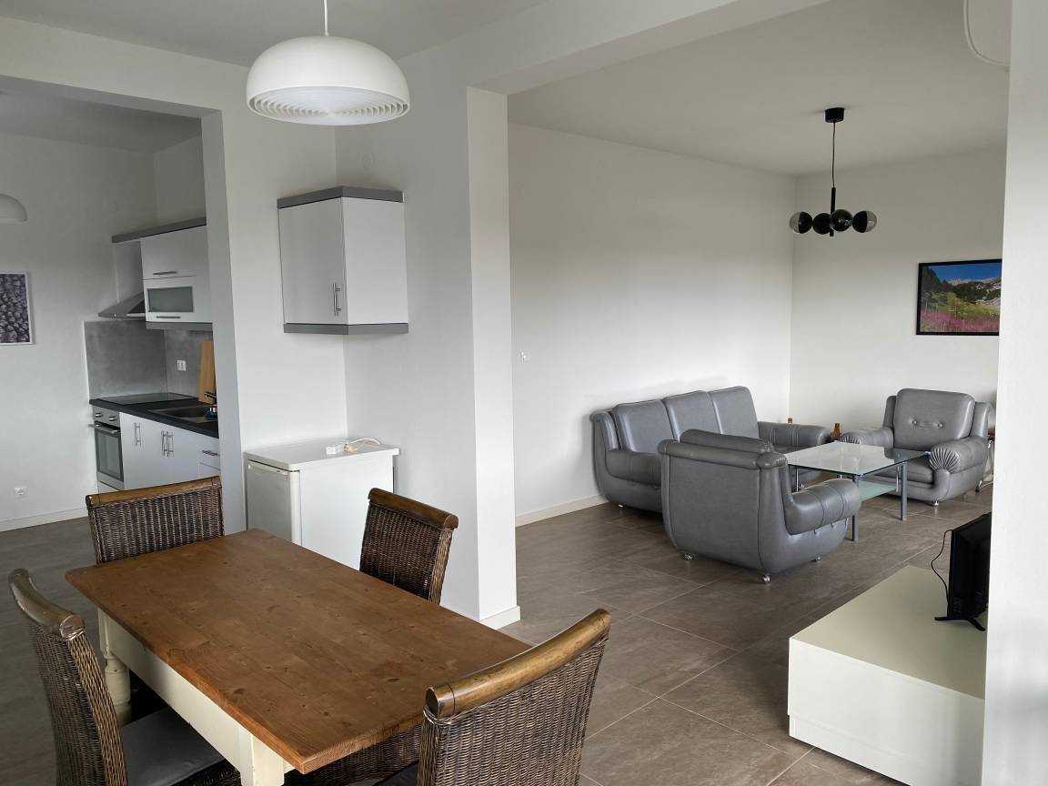 Großer Wohn-/Essbereich mit moderner Küche