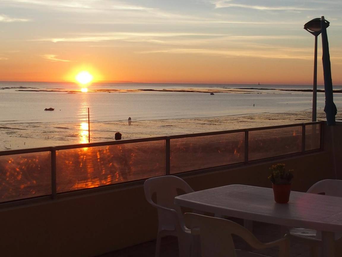 „Si l’accueil du samedi par « la Conciergerie » fut succinct, nous n’avons qu’à nous féliciter de celui, le lendemain matin, du propriétaire. A savoir: Petites viennoiseries offertes (délicatesse renouvelée la semaine suivante); conseils sur les promenades pouvant nous intéresser; mise à jour, à notre attention, du livret d’accueil; intervention quasi-immédiate pour satisfaire l’une de nos petites demandes concernant la salle de bains; informations sur l’utilisation des téléphones portables et de la wi-fi; prêt d’un ouvrage sur l’histoire de la ville; etc. L’appartement est confortable, la vue de la terrasse (qui est grande) sur la mer est imprenable et se magnifie à chaque coucher de soleil (à contempler tout en lisant le poème de Verlaine annexé dans le livret d’accueil !), de nombreux livres intéressants sont proposés, …. Aucun problème d’approvisionnement, boutiques traditionnelles, supermarché, marché deux fois par semaine dans un proche environnement...Ancun problème de stationnement pour notre véhicule sur le parking "privé" dédié.“
