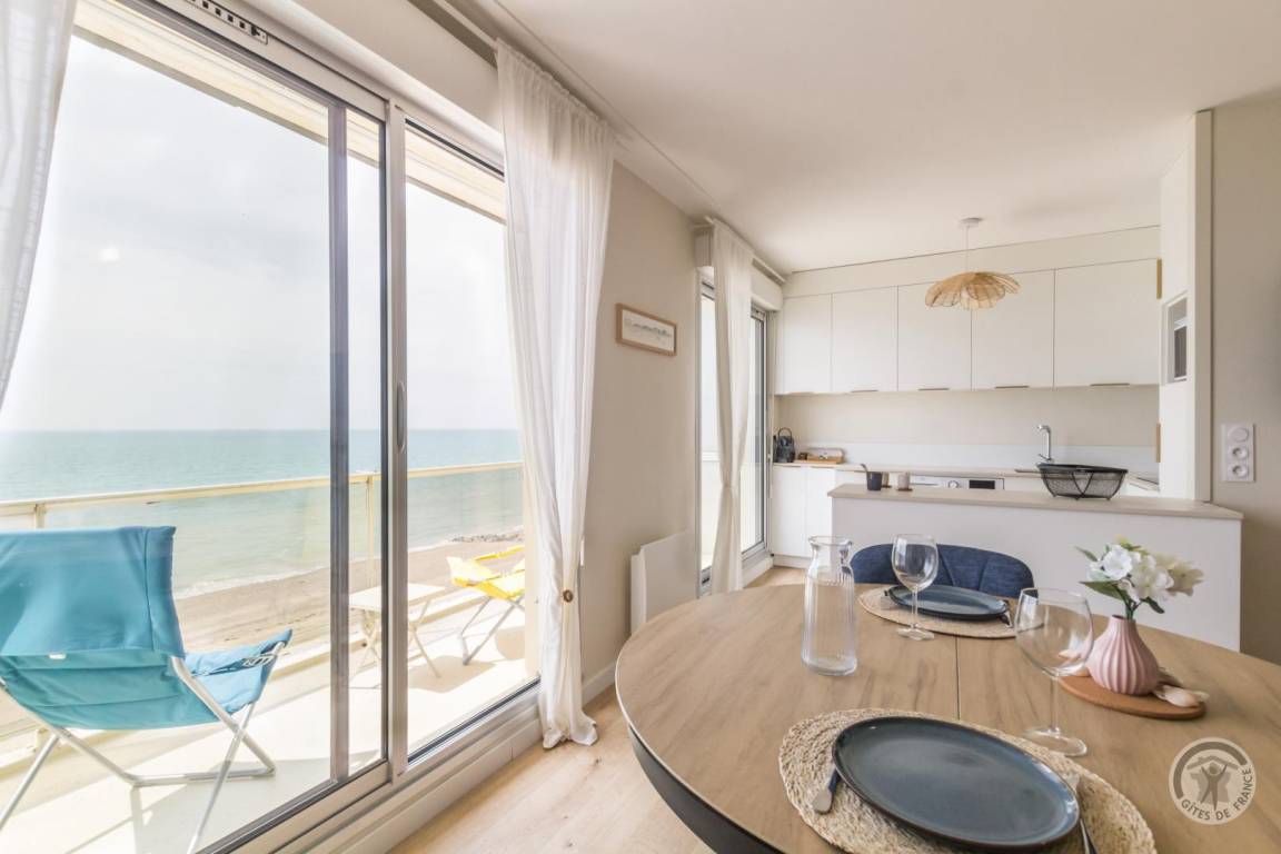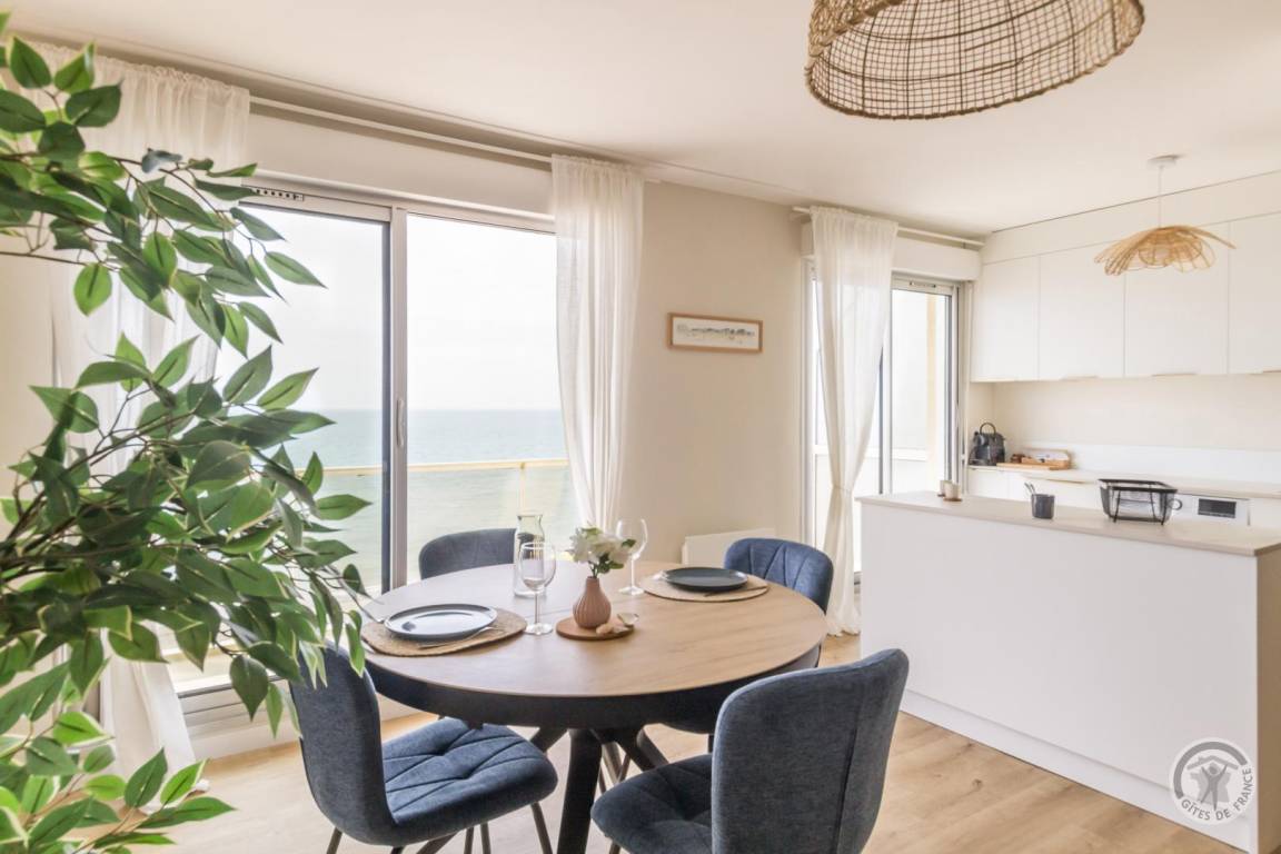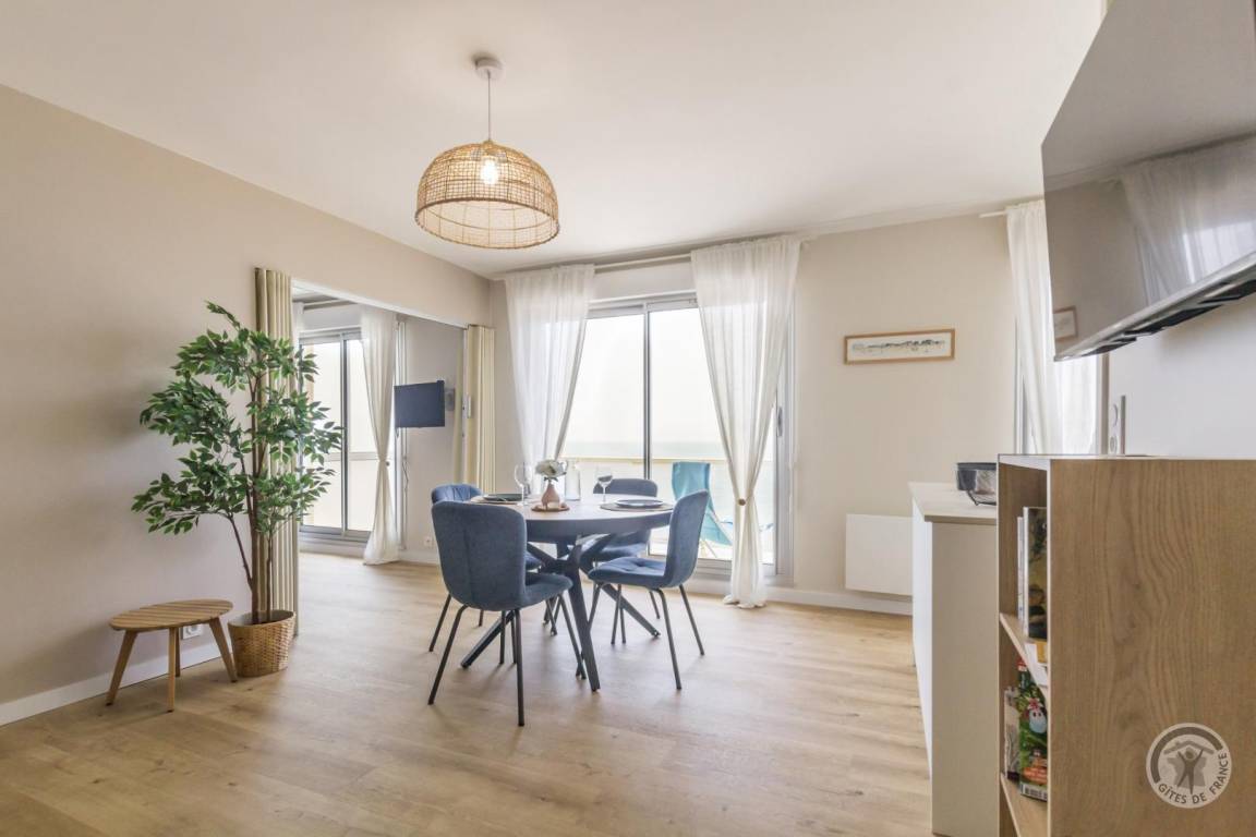 „Appartement fidèle aux photos du site. Appartement très lumineux, face à la mer, d une extrême propreté, équipements neufs, tout y est pensé, il ne manque rien. Jolie déco sobre et claire. Petit immeuble calme, très proche de la grande digue qui mène à Agon coutainville à pieds. Commerces proches et de qualité. La cerise sur le gâteau le spectacle de la mer et ses couchers de soleil toujours différents en face de la grande baie vitrée le bonheur assuré“