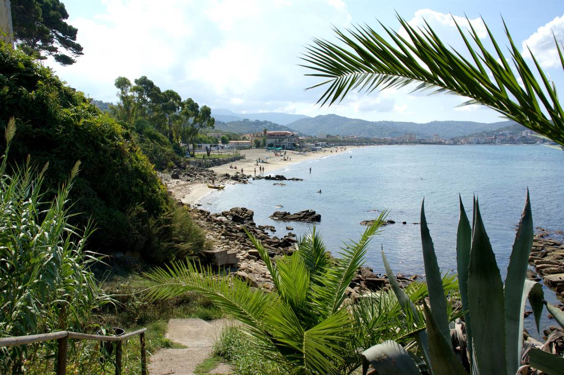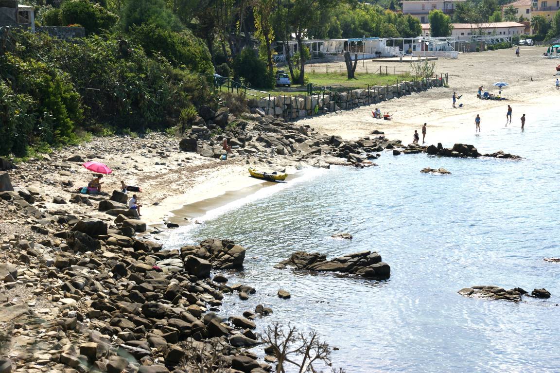 When you pass by the neighboring houses and after about 100 m, you arrive at a small gate. Behind wild agaves, a view of the fine sandy beaches in the northern part of Agropoli opens up before you. A short stepped path runs down to the sea and to the sandy bay, which is easily reached by way of a stone path. The longer section of beach which follows is partly with service during the summer months.