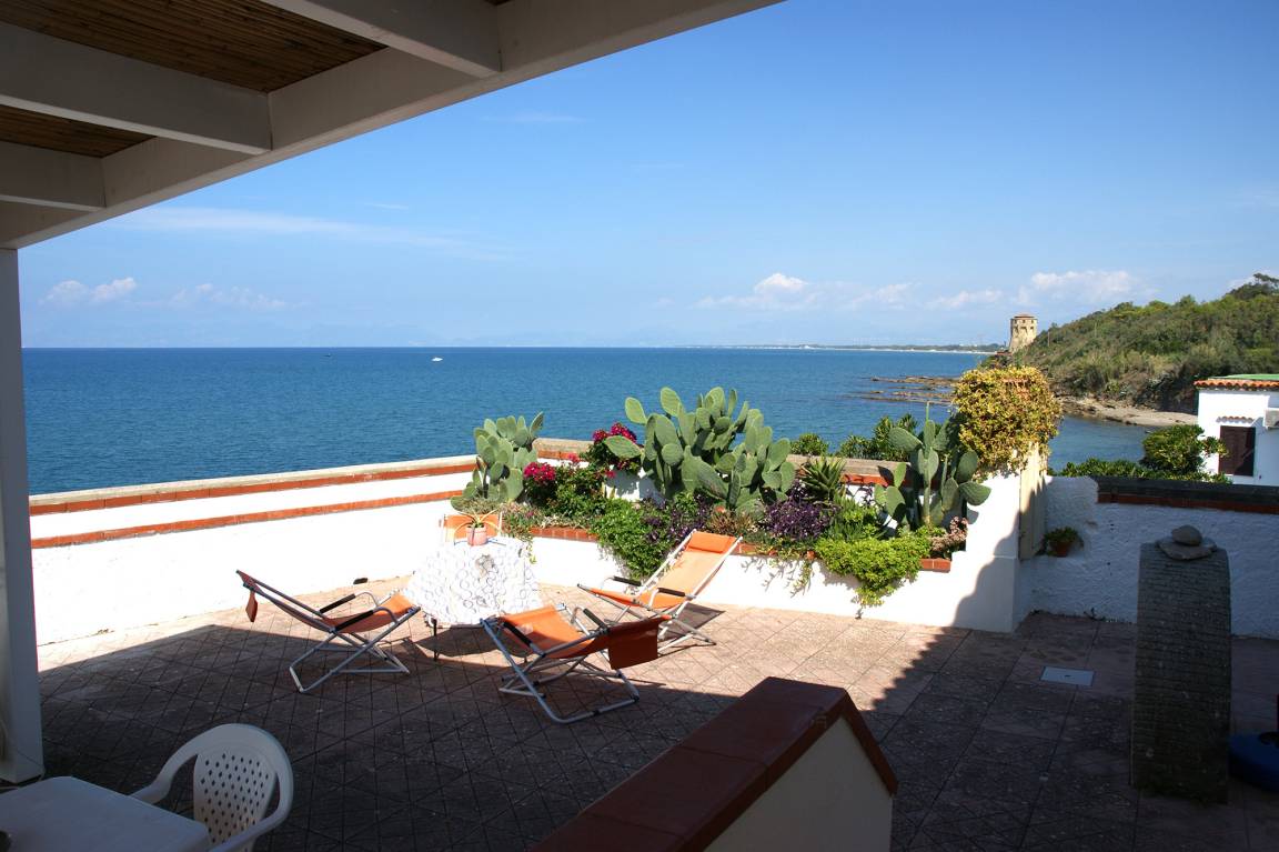 In der Casetta sulla Scogliera sind Sie umgeben von Meer. Die ca. 70 qm große, von einer kleinen Steinmauer umfasste Terrasse endet direkt über dem Tyrrhenischen Meer. Viel Platz bietet sich hier zum Sonnenbaden und Panorama genießen. In Sichtweite befindet sich u.a. die Amalfiküste.