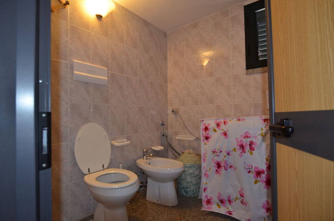 Badezimmer: Waschbecken, WC, Bidet, Dusche, Fön, Waschmaschine, WiFi Internet.