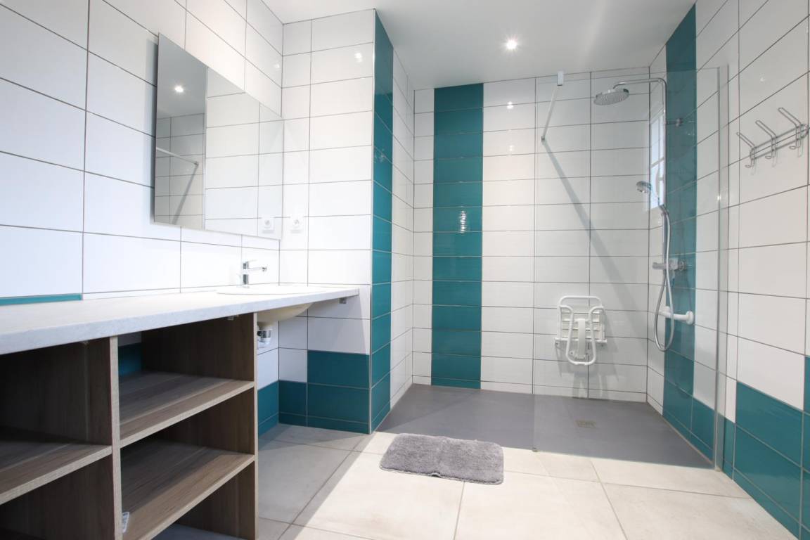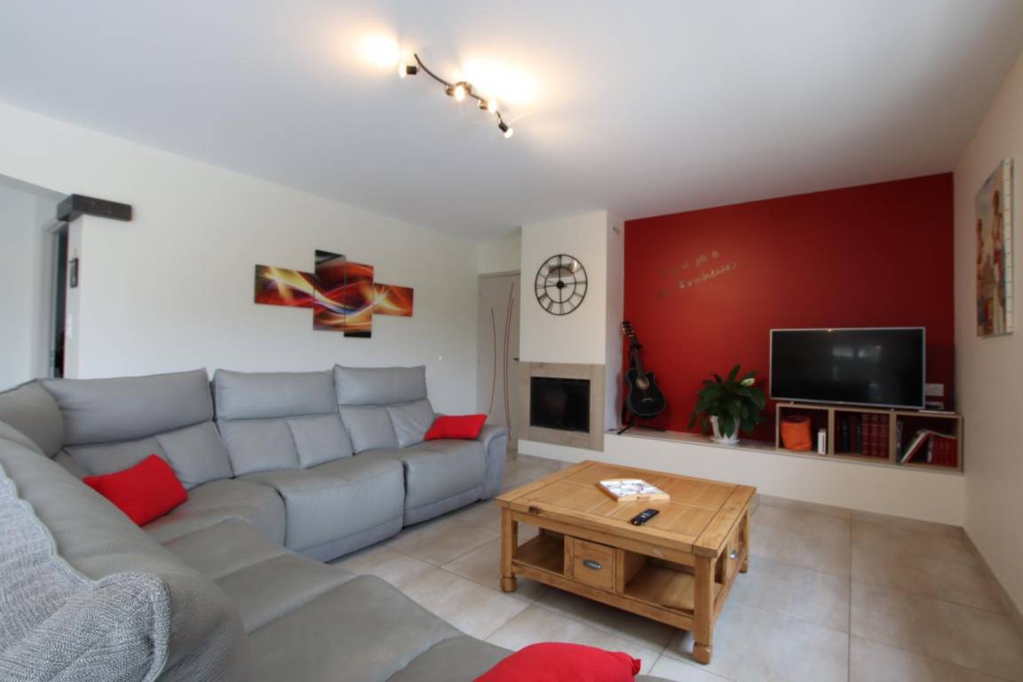 Erdgeschoss: Einbauküche (Cerankochfeld, Backofen, Mikrowelle, Kühlschrank mit Gefrierfach, Geschirrspüler), Wohnzimmer, Sitzecke mit Kamineinsatz. 1 Schlafzimmer für Personen mit eingeschränkter Mobilität (1 Doppelbett) mit angrenzendem Duschbad.