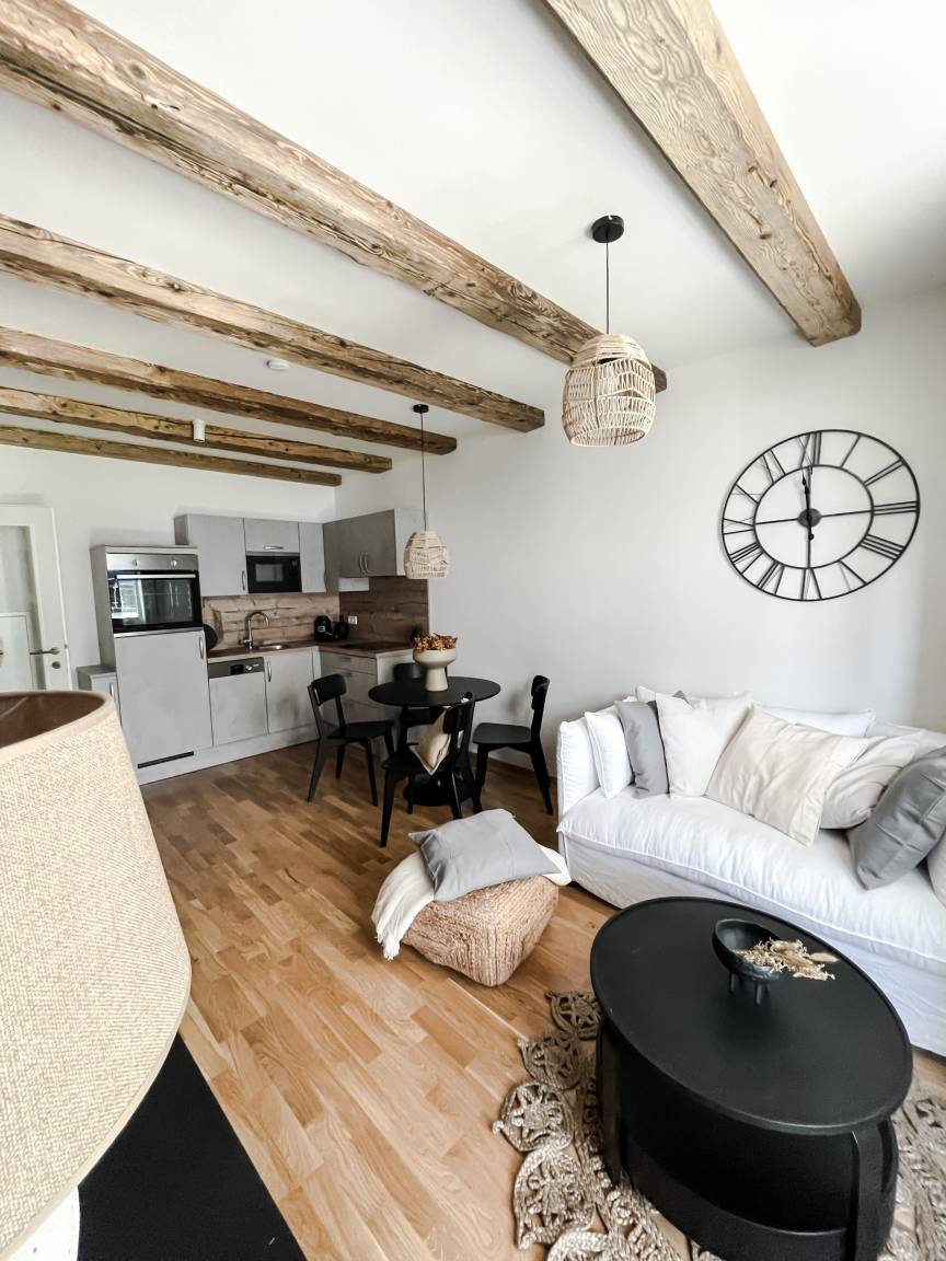 The modern ground-floor apartment accommodates up to six people. Two bedrooms, a fully equipped kitchen-diner, a stylish bathroom, a separate toilet, and a comfortable living area with a flat-screen TV ensure a relaxing vacation. The large terrace with mountain views invites you to linger. Wi-Fi and satellite TV are included. Summer Card is included!