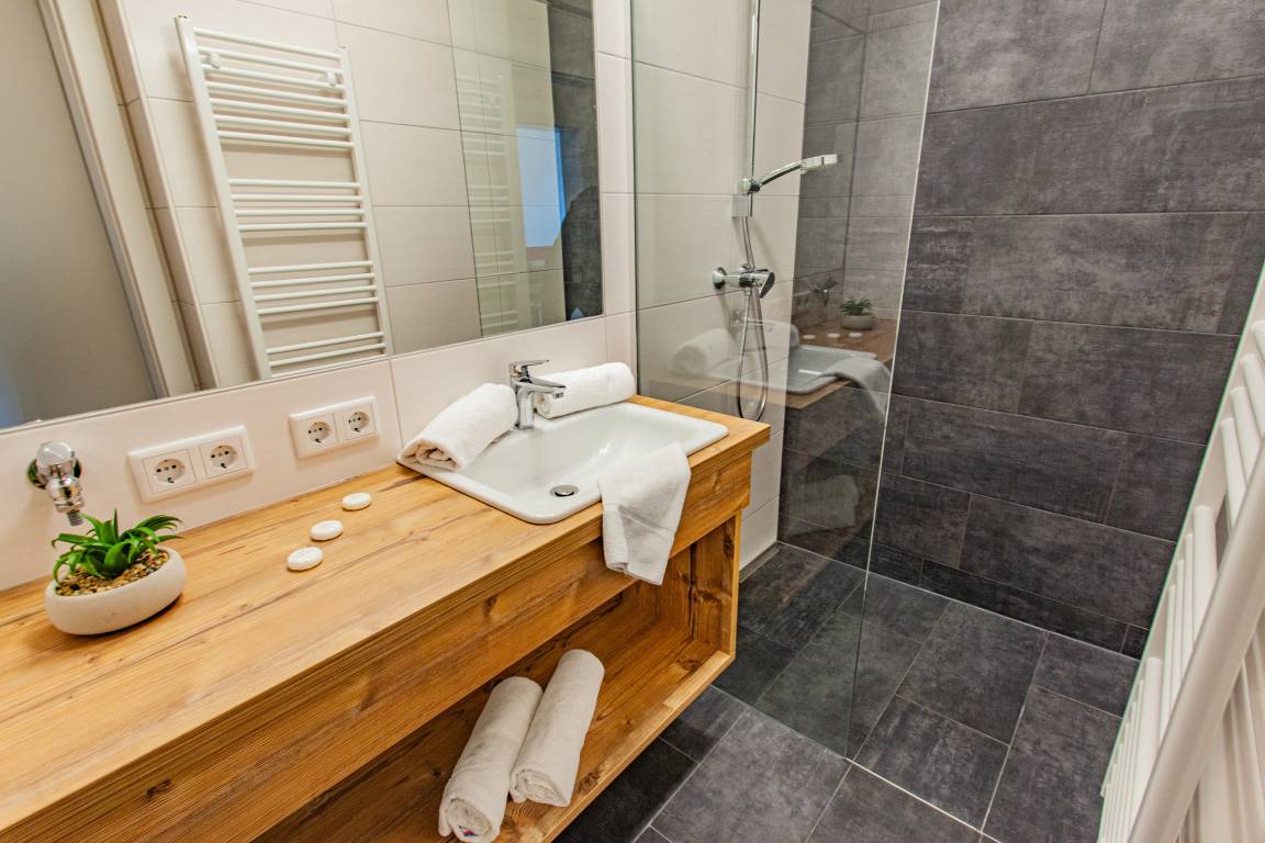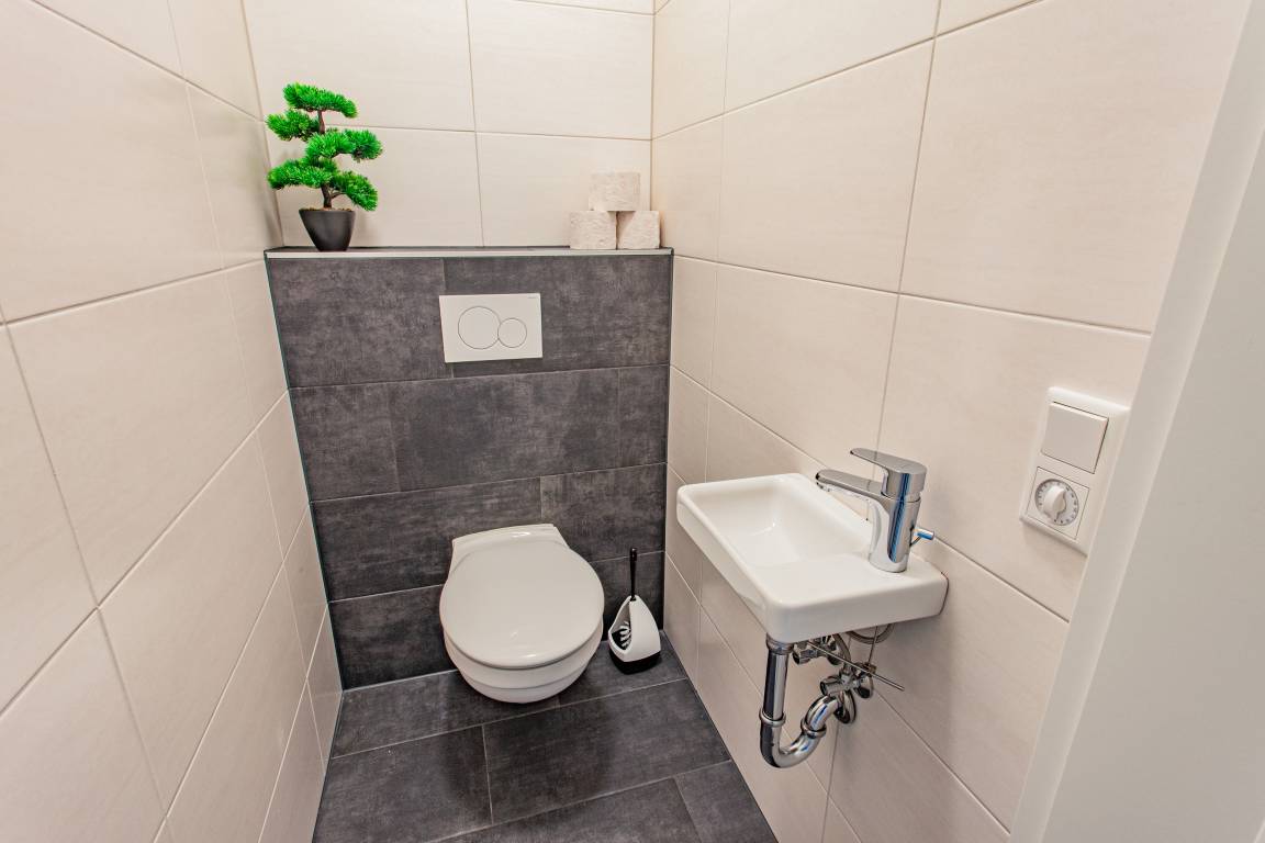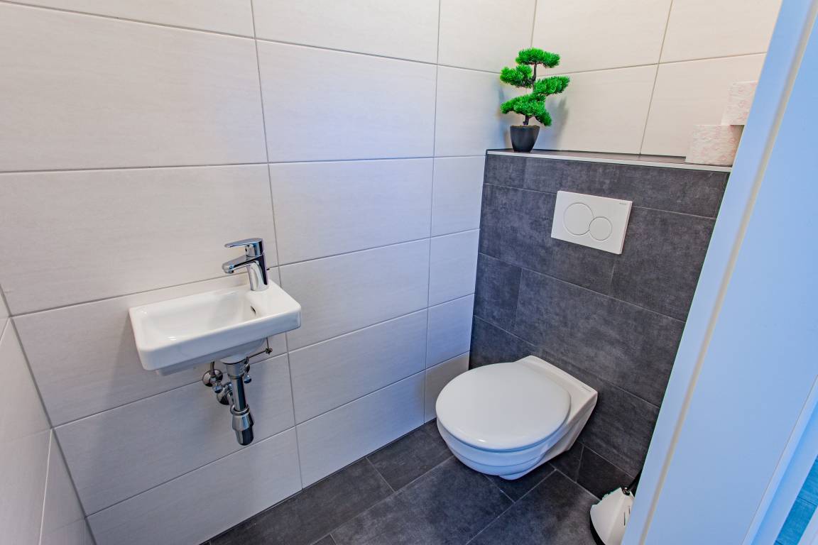 The comfortable, modern furnished apartment for up to 10 persons is located on the upper floor of a newly built building and consists of three bedrooms, two kitchens (stove with oven, dishwasher, toaster, kettle), two bathrooms, two toilets and a spacious terrace.