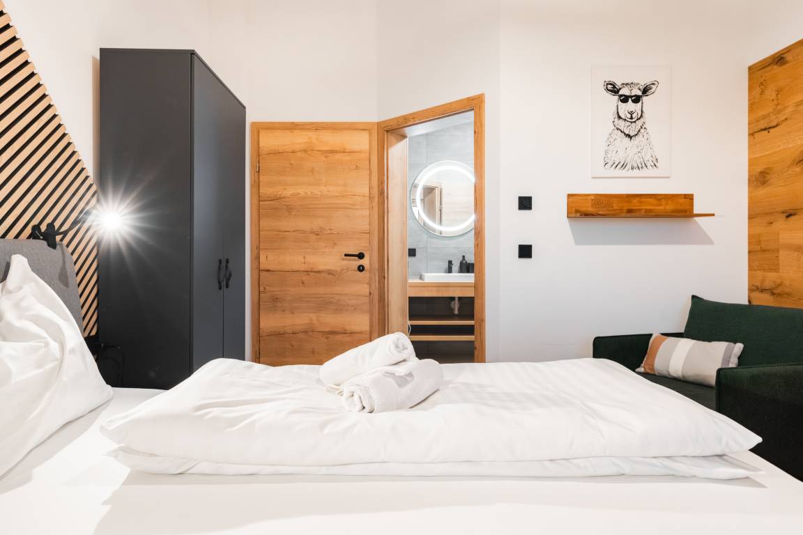 The modern 88 m² Aich Amadé apartment offers maximum comfort for families and groups of up to 8–10 people. Three bedrooms (3× double beds, 1× bunk beds) and two pull-out sofas.