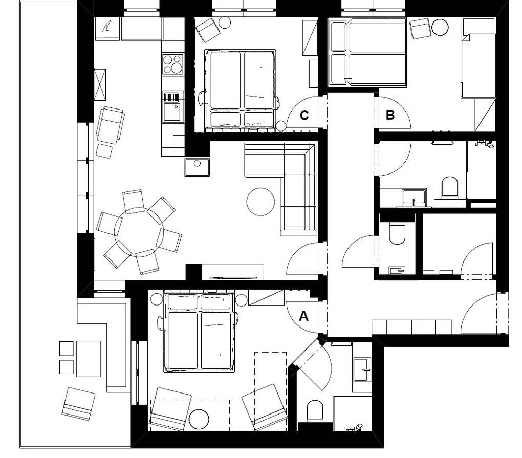 88 m² Ferienwohnung ∙ 3 Schlafzimmer ∙ 8 Gäste
