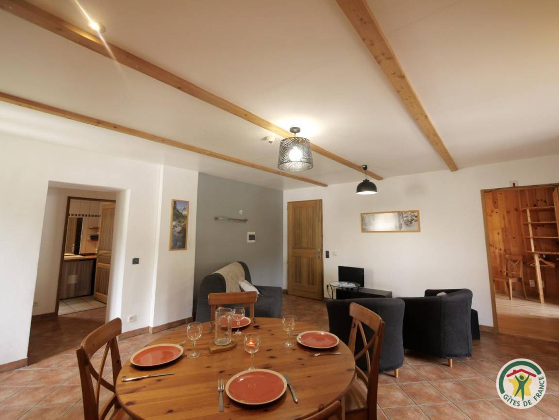 „Nous avons été super bien accueilli par Séverine l'hôte du gîte ainsi que Pascale, avec plusieurs petites attentions, confitures, tisanes, gâteau fait maison, ça fait vraiment plaisir. Le gîte est bien spacieux et il a tout le nécessaire pour y passer une semaine avec tout le matériel dont on peut avoir besoin, vaisselle, lave linge, lave vaisselle, etc... Le lieu environnant est ressourçant et calme (après cela dépend des voisins que l'on a dans les gîtes autour de nous), un seul petit bémol c'est que la terrasse manque un peu d'intimité avec le passage juste devant, mais les voisins étaient cool et nous n'avons pas été génés, on a pu profiter du czlme de la terasse les fins de journées après nos rando sur les chaises devant la vue sur la nature c'était vraiment ressourçant. Les chambres sont spacieuses et elles possèdent des rangements ce qui est appréciable, ainsi que la salle de bain qui est également spacieuse et avec rangements également. Il y a un petit commerce, pharmacie et restaurants à 5 min à pied ce qui est vraiment très appréciable et évite de prendre la voiture. Lieu à recommander pour découvrir le Queyras!“