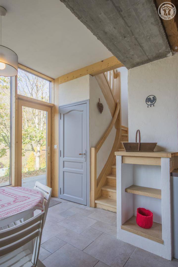 Ferienhaus im Haus der Eigentümer mit 3 Gästezimmern. Auf 2 Ebenen mit unabhängigem Zugang von außen (2 Stufen). Erdgeschoss: Wohnküche, Waschküche mit WC und Waschbecken. Im 1. Stock: ein Schlafzimmer (2 Einzelbetten 90 x 190 cm) mit eigenem Bad (ebenerdige Dusche und WC), ein großes Wohnzimmer von 30 m² mit einem ausziehbaren Sofa vom Typ Rapido für 2 Personen (140 x 190 cm), das durch einen Vorhang verschlossen ist, Satellitenfernsehen, WLAN-Verbindung. Bettwäsche und Handtücher inklusive. Die Betten sind bei der Ankunft bezogen. Kleine Terrasse vor dem Ferienhaus mit Grill.