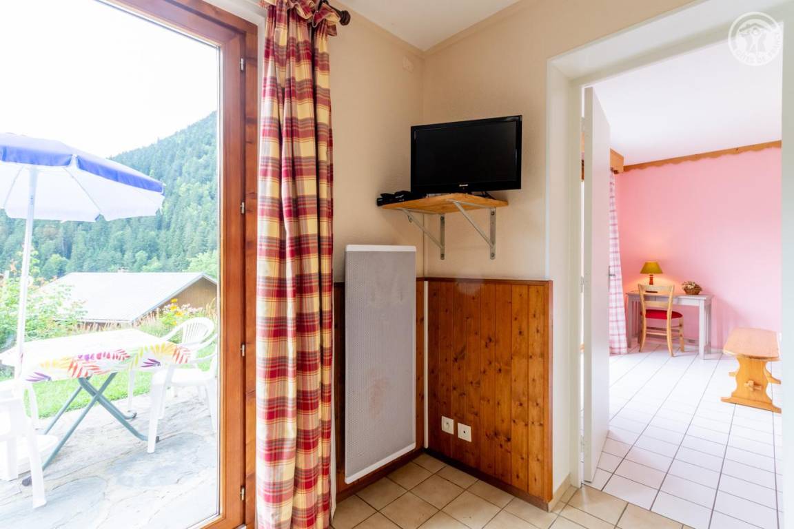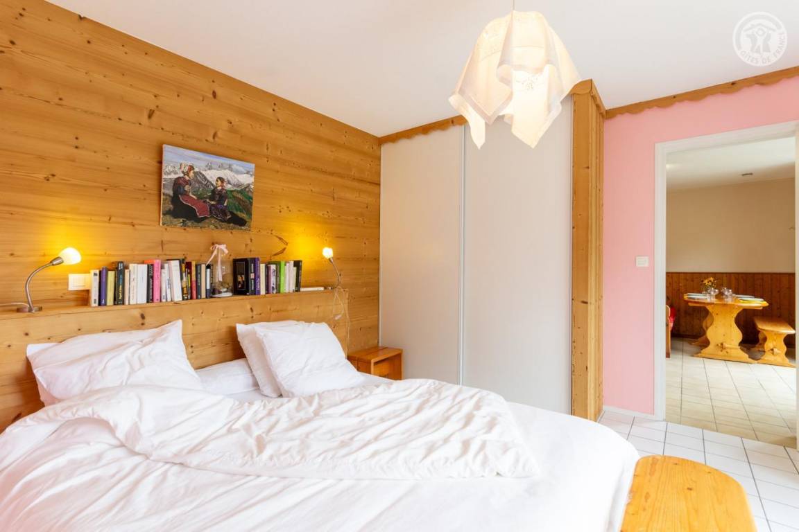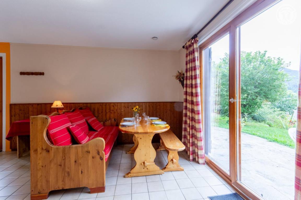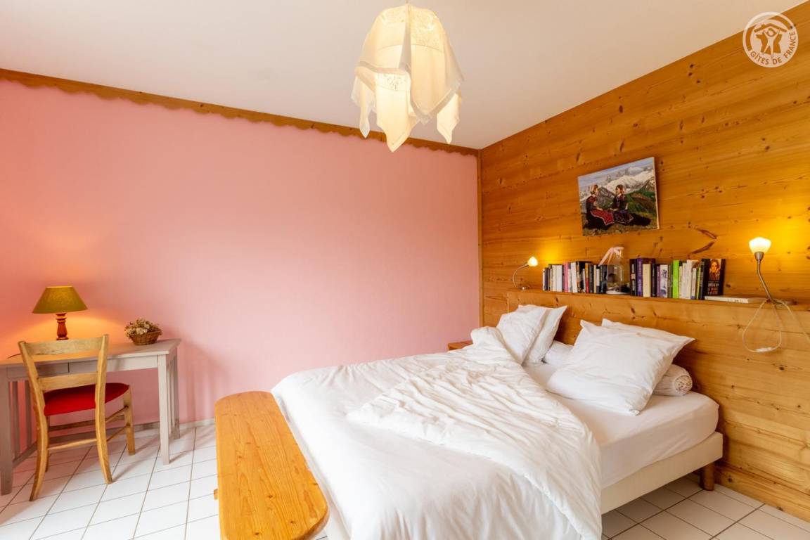 Gîte im Erdgeschoss des Chalets des Eigentümers (Zugang von der Straße über den sanft abfallenden Garten (keine Stufen oder Treppen), bestehend aus Wohnküche (kombinierter Mikrowellenherd), 2 Schlafzimmern (1 Doppelbett 160x200 cm / 2 Einzelbetten). 90x190 cm), ein Badezimmer (Dusche und WC).