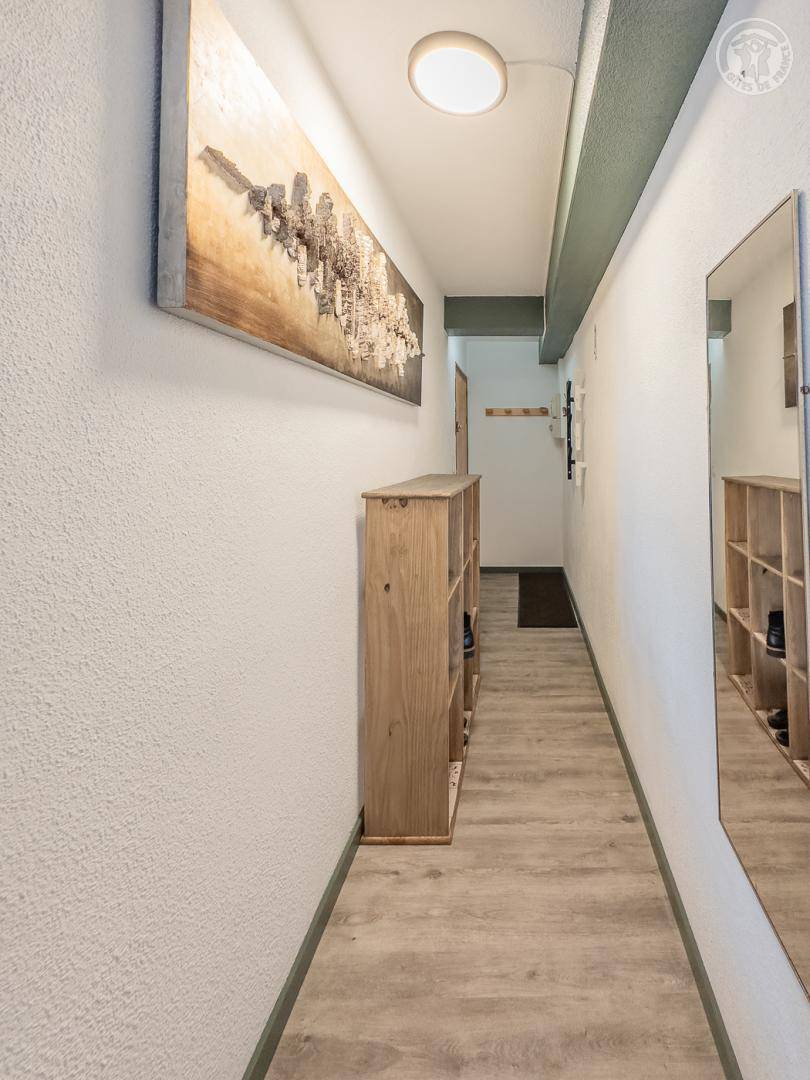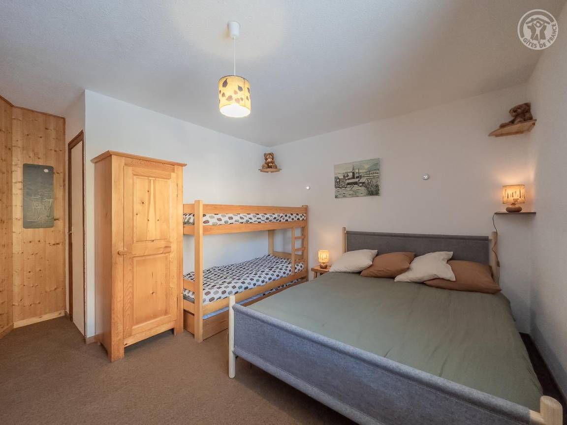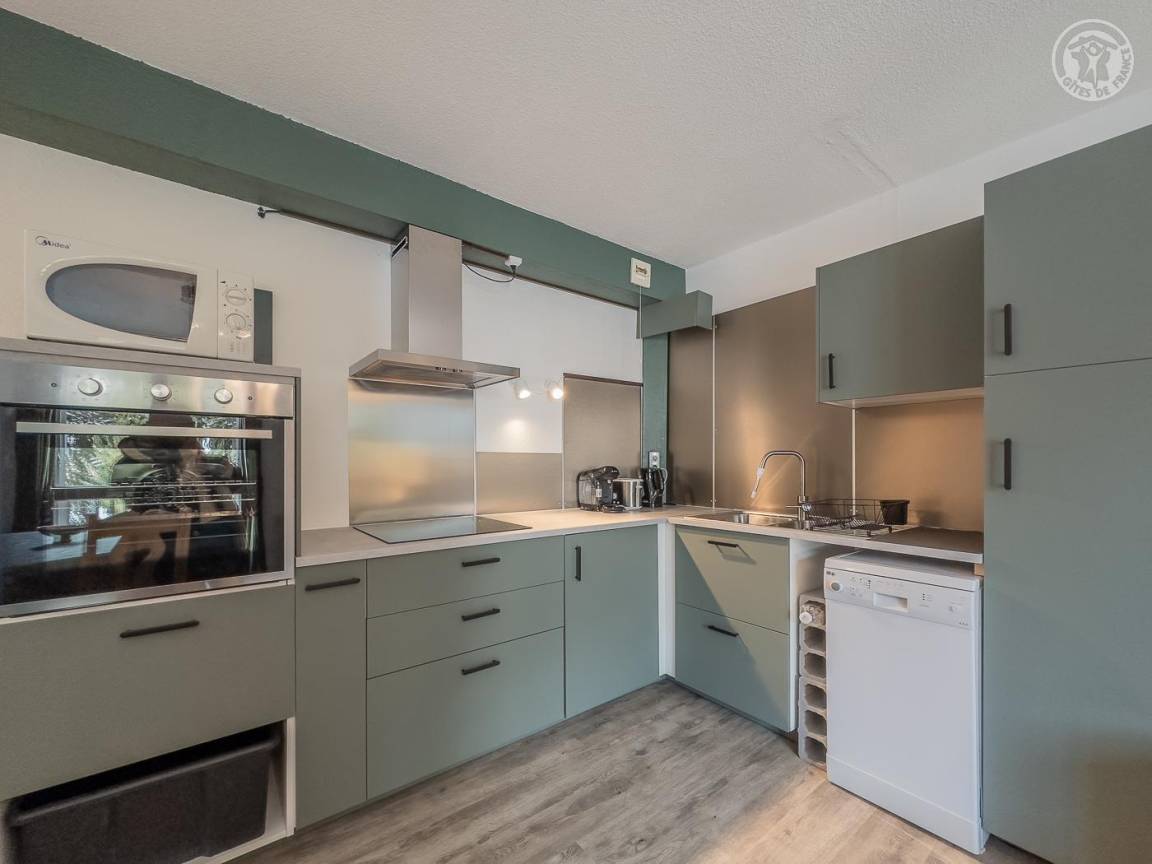 Wohnung auf zwei Ebenen in Flexiblex in einer Residenz mit Zugang über drei aufeinanderfolgende Treppen mit wenigen Stufen. Eingang, Küche, Wohnzimmer, Wohnzimmer mit Schlafsofa (1 Doppelbett), Zugang zu einem Balkon. Auf Ebene -1 (Erdgeschoss der Wohnung): Familienschlafzimmer (1 Doppelbett / 2 Etagenbetten), Badezimmer (Badewanne) mit WC, privat zum Schlafzimmer. Gemeinsamer Parkplatz für die Residenz reserviert.