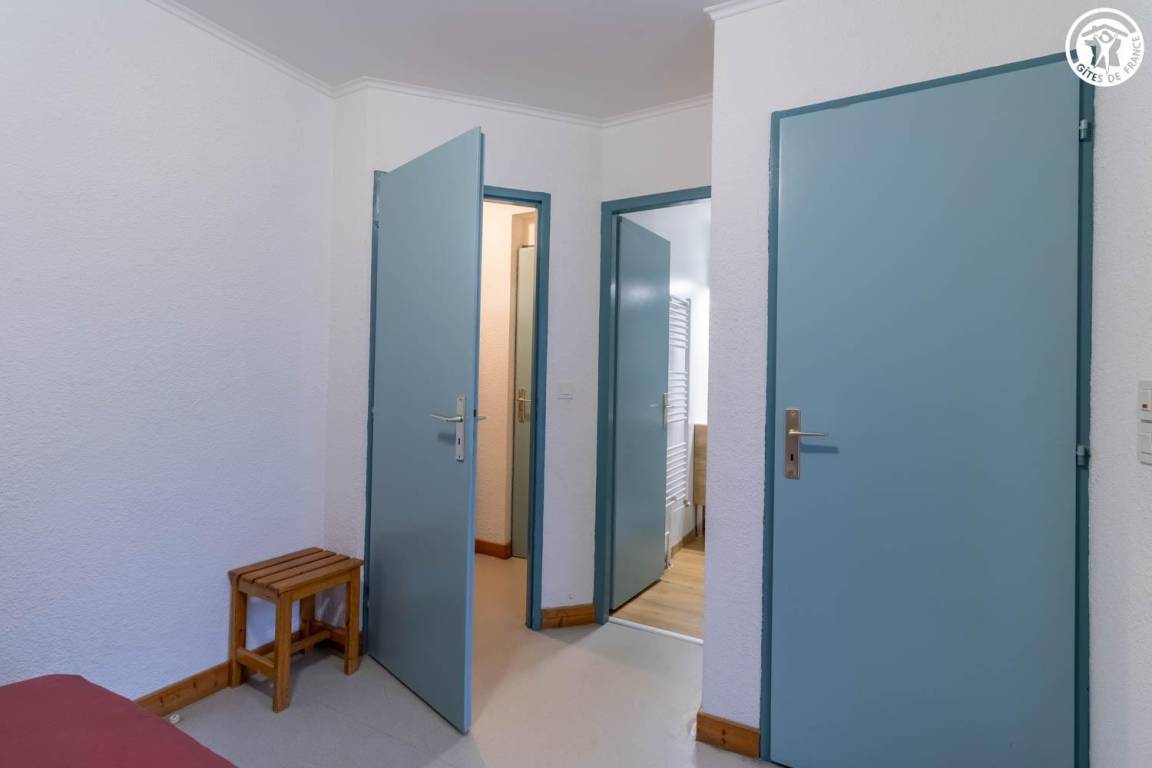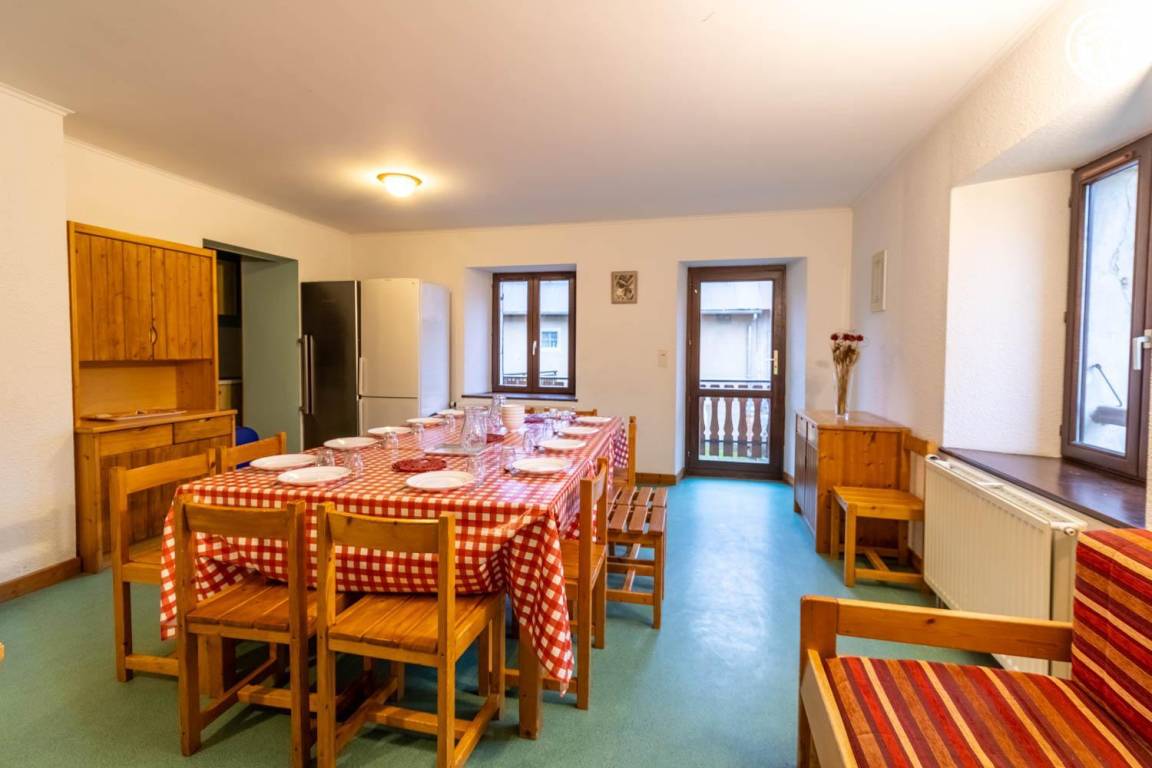 Gemeinschaftswohnungen in einem Haus mit 2 weiteren Unterkünften. Erdgeschoss: Wohnküche mit 1 Ausziehbett 140x190 cm, 4 Schlafzimmer, davon eines mit Duschbad (1 Doppelbett 140x190 und 1 Einzeletagenbett 90x190 cm / 1 Doppelbett 140x190 und 1 Einzeletagenbett 90x190 cm / 1 Doppelbett 140x190 und 1 Einzeletagenbett 90x190 cm / 1 Doppelbett 140x190 und 1 Einzeletagenbett 90x190 cm), Duschbad. Gemeinsamer Waschraum im Keller.