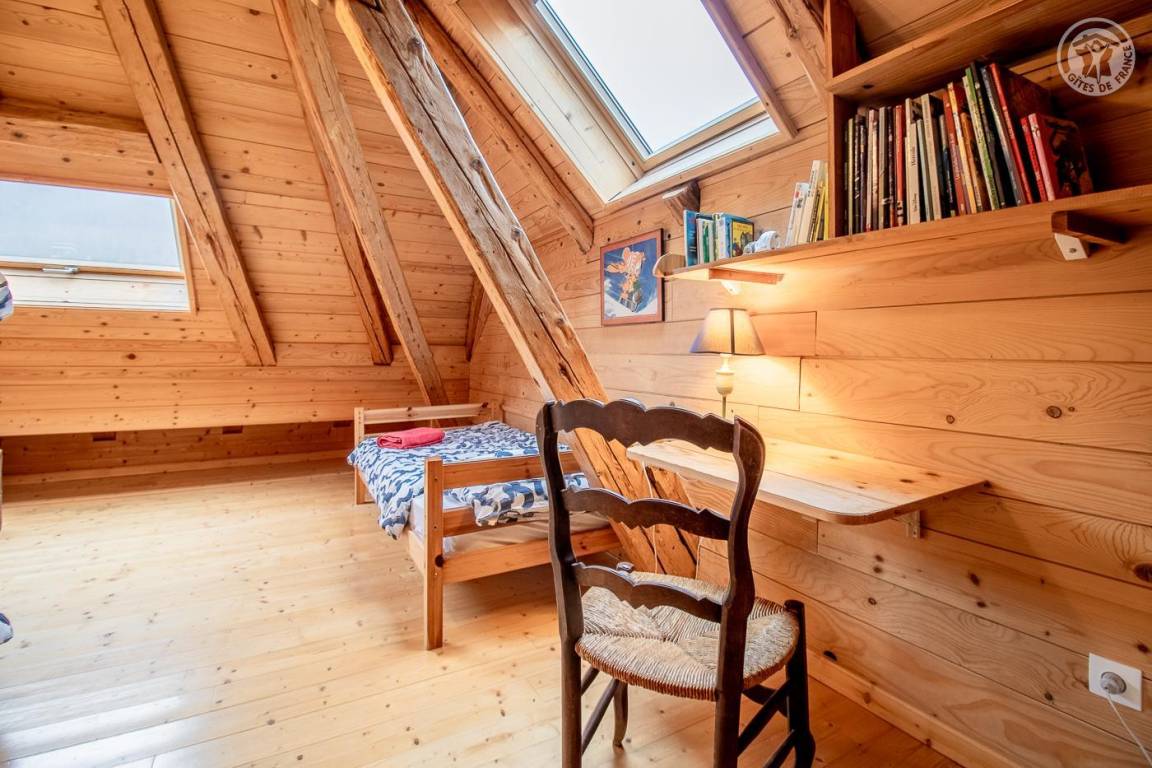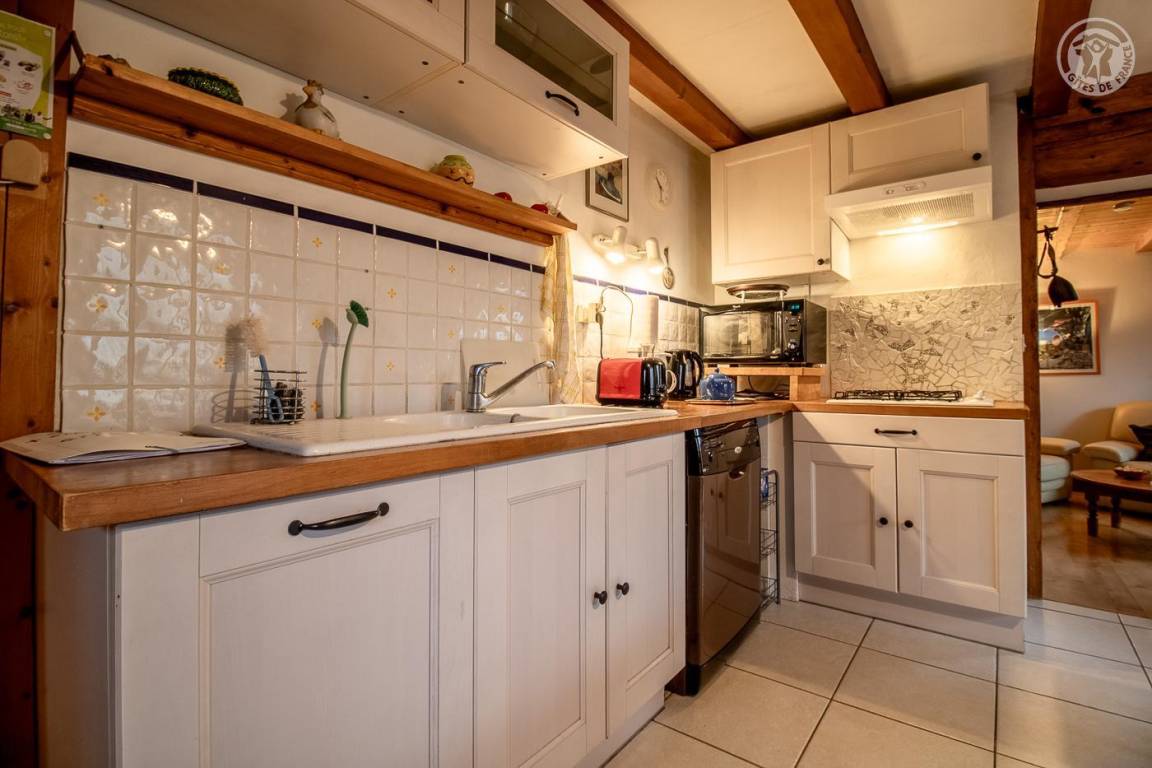 Gîte neben dem Haus des Eigentümers auf 3 Ebenen. Eingang zur Ebene 1 über die Terrasse: Eingang, Badezimmer (Dusche), separates WC, Küche, Lounge - Wohnzimmer. 2. Etage: 2 Schlafzimmer (1 Doppelbett 140x190 cm / 2 Einzelbetten 90x190 cm), ein Bürobereich. Erdgeschoss: 1 Schlafzimmer (1 Doppelbett 140x190 cm) mit Blick auf den Garten. Essbereich im Freien mit Grill. Ein privater Parkplatz 50 Meter vom Eingang der Unterkunft entfernt. Waschküche außerhalb der Gîte im Kellerbereich des Eigentümers. Bettwäsche und Handtücher inklusive. Holzbefeuerte Zentralheizung. Wohnfläche: 108m².