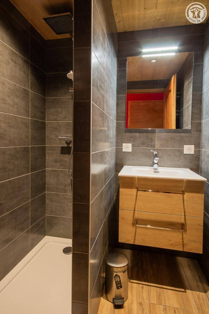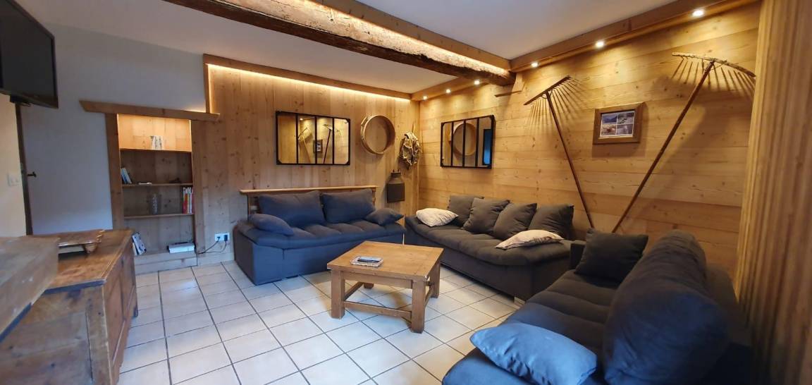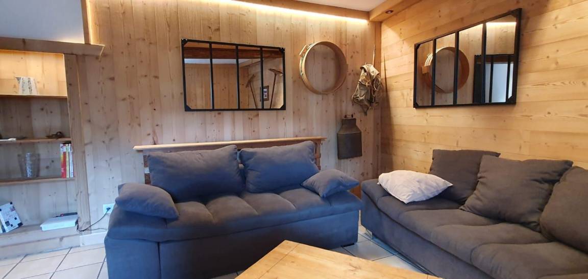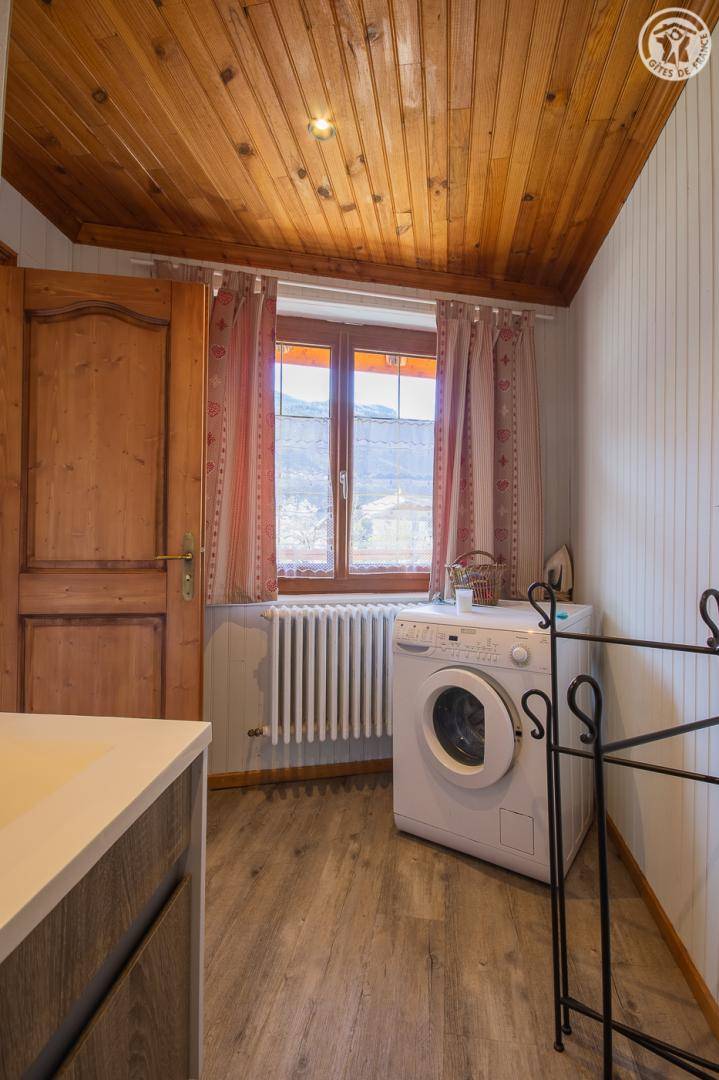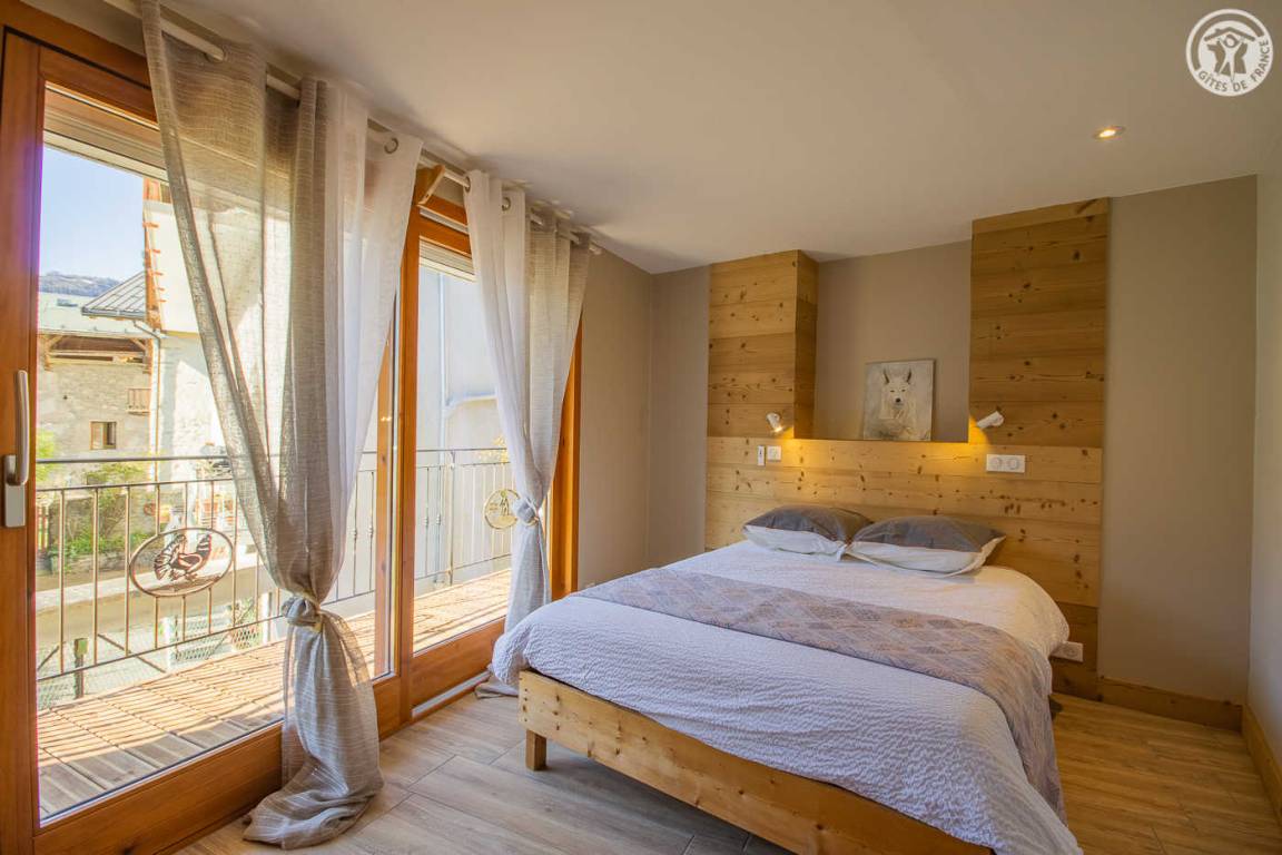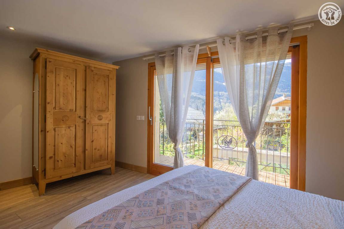 Gîte auf 3 Ebenen (Erdgeschoss + 1. + 2. Stock) in einem Reihenhaus. Erdgeschoss: Eingangshalle, 1 Schlafzimmer mit gewölbter Decke (1 Doppelbett). 1. Stock: separates WC mit Waschbecken. 2. Stock: Wohnküche, Wohnzimmer, eine Familiensuite mit 2 miteinander verbundenen Schlafzimmern, von denen 1 ein zweites Tagesfenster hat (1 Doppelbett und 2 Einzelbetten), 1 Schlafzimmer mit Waschbecken (2 Einzel-Etagenbetten und 1 Doppelbett). Personen), 2 Schlafzimmer (2 Etagenbetten / 1 Doppelbett). 3 Duschräume (davon eine begehbare Dusche) und 2 separate WCs mit Waschbecken. 2 Balkone + privater eingezäunter Garten. Skiraum mit elektrischem Schuhtrockner.