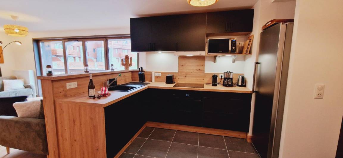 Diese neue Residenz (2024) befindet sich im Zentrum des Resorts. Von den Balkonen aus können Sie den Sonnenuntergang genießen. Ausgestattet mit einem Aufzug ist diese Residenz ideal für einen angenehmen Aufenthalt. Fläche von ungefähr 123 m². 3te Etage. Orientierung : Süd, West. Blick berg. Niveau 0 : Wohnzimmer. Schlafzimmer mit , Doppelbett (160). mit , Raclettegerät, Wasserkocher, Kaffeemaschine, Backofen, Geschirrspülmaschine, Mikrowellenherd, 3 Induktionsherdplatten, Kühlschrank. Badezimmer mit WC. Balkon. Niveau 1 : offener Schlafbereich mit 4 Stockbetten. Schlafzimmer mit Doppelbett. Schlafzimmer mit , Doppelbett (160). Schlafzimmer mit , 2 Stockbetten. Waschküche mit Waschmaschine, Wäschetrockner, Bügelbrett und Bügeleisen. Badezimmer mit Badewanne. separates WC. Die oberen Betten sind nicht für Kinder unter 6 Jahren geeignet.