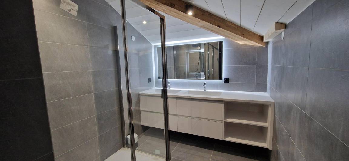 Diese neue Residenz (2024) befindet sich im Zentrum des Resorts. Von den Balkonen aus können Sie den Sonnenuntergang genießen. Ausgestattet mit einem Aufzug ist diese Residenz ideal für einen angenehmen Aufenthalt. Fläche von ungefähr 177 m². 2te Etage. Orientierung : Nord, Ost. Blick berg. Niveau 0 : Wohnzimmer mit Sofa, Kamin, TV. Schlafzimmer mit Büro, Doppelbett (160), TV. Schlafzimmer mit Doppelbett (160), Waschraum, TV. Schlafzimmer mit Doppelbett (160), Waschraum, TV, WC. offene Küche mit Fonduegerät, Raclettegerät, Wasserkocher, Kaffeemaschine (Nespresso), Backofen, Toaster, Geschirrspülmaschine, Mikrowellenherd, Mixer, Induktionsherdplatten, Kühlschrank. Badezimmer mit WC. separates WC. Balkon. Niveau 1 : Schlafzimmer mit Ausziehschlafcouch für 2 Personen, Einzelbett, 2 Stockbetten. Schlafzimmer mit , , Doppelbett (160), TV. Waschküche mit Waschmaschine, Wäschetrockner, Bügelbrett und Bügeleisen. Waschräume mit WC. Die oberen Betten sind nicht für Kinder unter 6 Jahren geeignet.