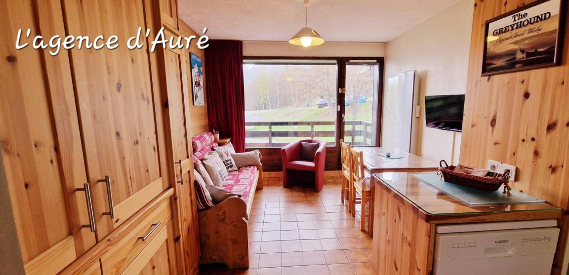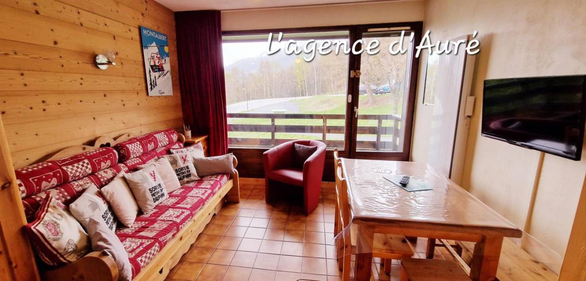 Fläche von ungefähr 46 m². Erdgeschoss. Orientierung : Ost. Blick tal. Niveau 0 : Wohnzimmer. offener Schlafbereich mit 2 Stockbetten. Kochnische mit Wasserkocher, Kaffeemaschine, Backofen, Toaster, Geschirrspülmaschine, Mikrowellenherd, 4 Herdplatten, Kühlschrank. separates WC. Balkon. Niveau -1 : offener Schlafbereich mit 2 Stockbetten. Schlafzimmer mit Doppelbett (140). Waschräume mit WC. Waschmaschine. Die oberen Betten sind nicht für Kinder unter 6 Jahren geeignet.
