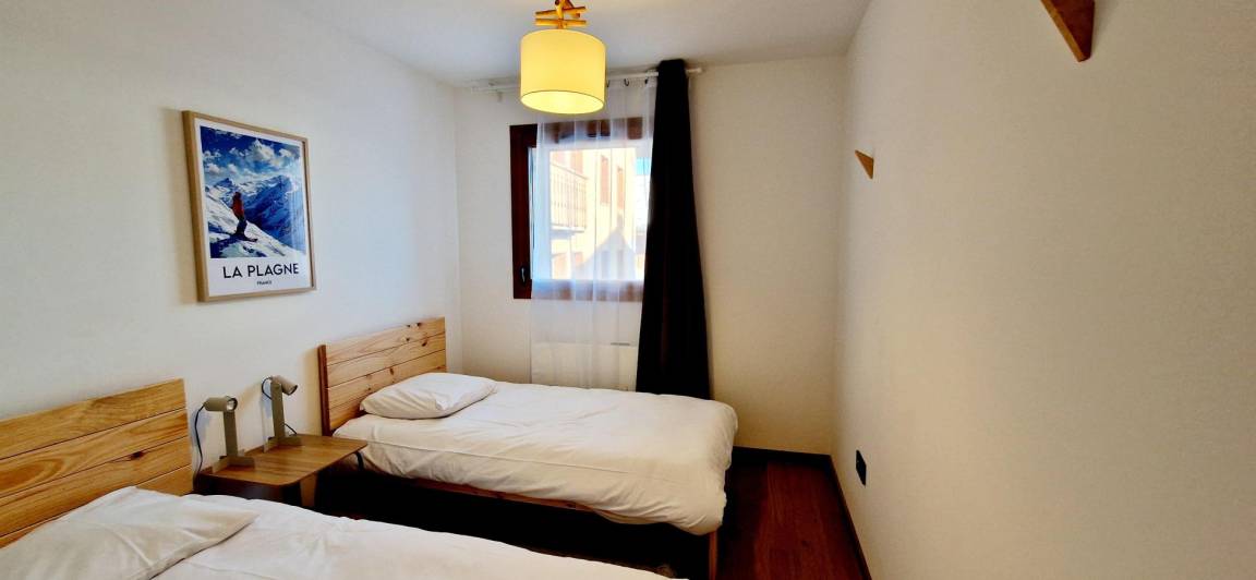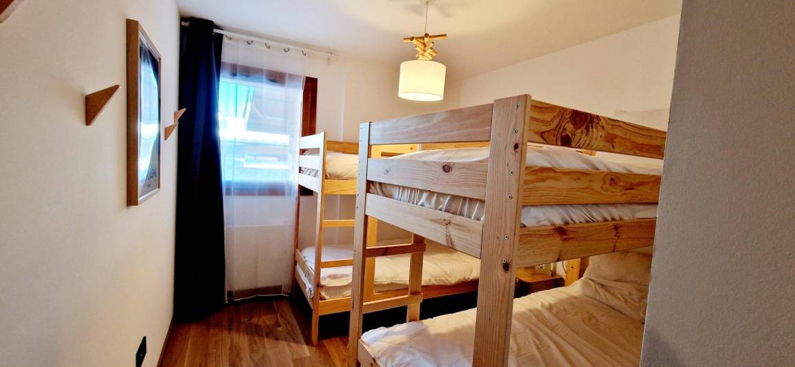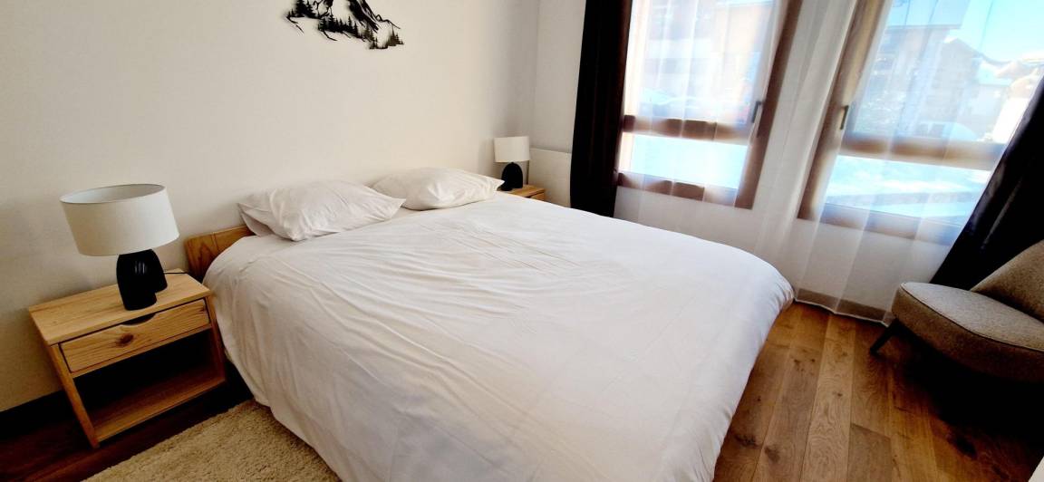 Inspiriert von einer typischen alten Scheune, verbindet die Architektur auf harmonische Weise Modernität und Tradition und bietet ein warmes und zeitgenössisches Ambiente. Diese Residenz bietet einen atemberaubenden Blick auf das Tal und die umliegenden Bergmassive und lädt zu Momenten der Entspannung mit Blick auf eine idyllische Landschaft ein. Die hochwertigen Dienstleistungen wie Holzparkettböden, ausgestattete Küchen und das maßgeschneiderte Dekorationspaket garantieren optimalen Komfort. Fläche von ungefähr 115 m². Orientierung : Nord, West. Wohnzimmer mit Sofa, TV. Schlafzimmer mit 4 Stockbetten. Schlafzimmer mit 2 Einzelbetten. 2 Schlafzimmer mit Doppelbett (160), Waschraum, WC. mit Raclettegerät, Wasserkocher, Kaffeemaschine, Backofen, Toaster, Geschirrspülmaschine, Mikrowellenherd, Herdplatten, Kühlschrank. Badezimmer mit Badewanne. separates WC. Balkon. Waschmaschine, Wäschetrockner. Die oberen Betten sind nicht für Kinder unter 6 Jahren geeignet.
