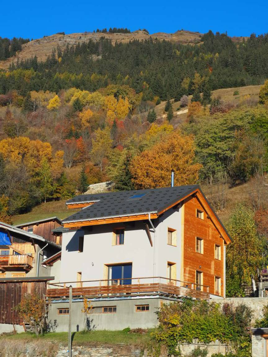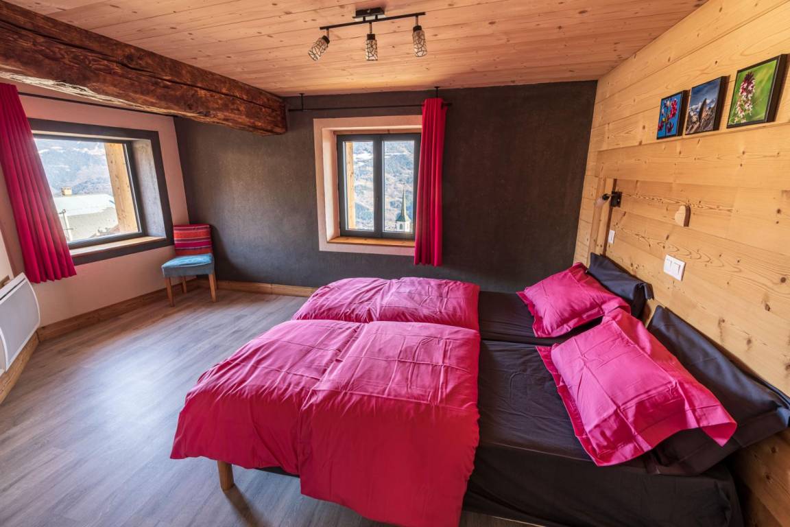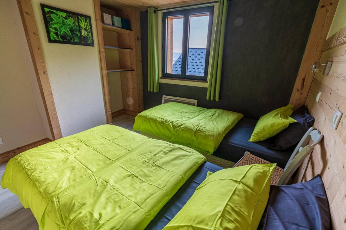 Einfamilienhaus auf 2 Ebenen umfasst im Erdgeschoss: eine Eingangshalle, ein Wohnzimmer mit Pelletofen (manuell aufladen) und im Wohnzimmer Küche geht auf 2 Terrassen, ein Bad (begehbare Dusche), separates WC. 1. Stock: 3 Schlafzimmer (2 Einzelbetten 80 x 200 cm kombinierbar zu 1 Doppelbett 160 x 200 cm / 2 Einzelbetten 80 x 190 cm kombinierbar zu 1 Doppelbett 160 x 190 cm / 2 Einzelbetten 90 x 190 cm), ein Badezimmer ( ebenerdiger Dusche), separates WC. Private Parkplätze (1 vor der Hütte und in der Nähe). Zugang von außen zur Waschmaschine, die sich in einem Keller im Untergeschoss befindet.