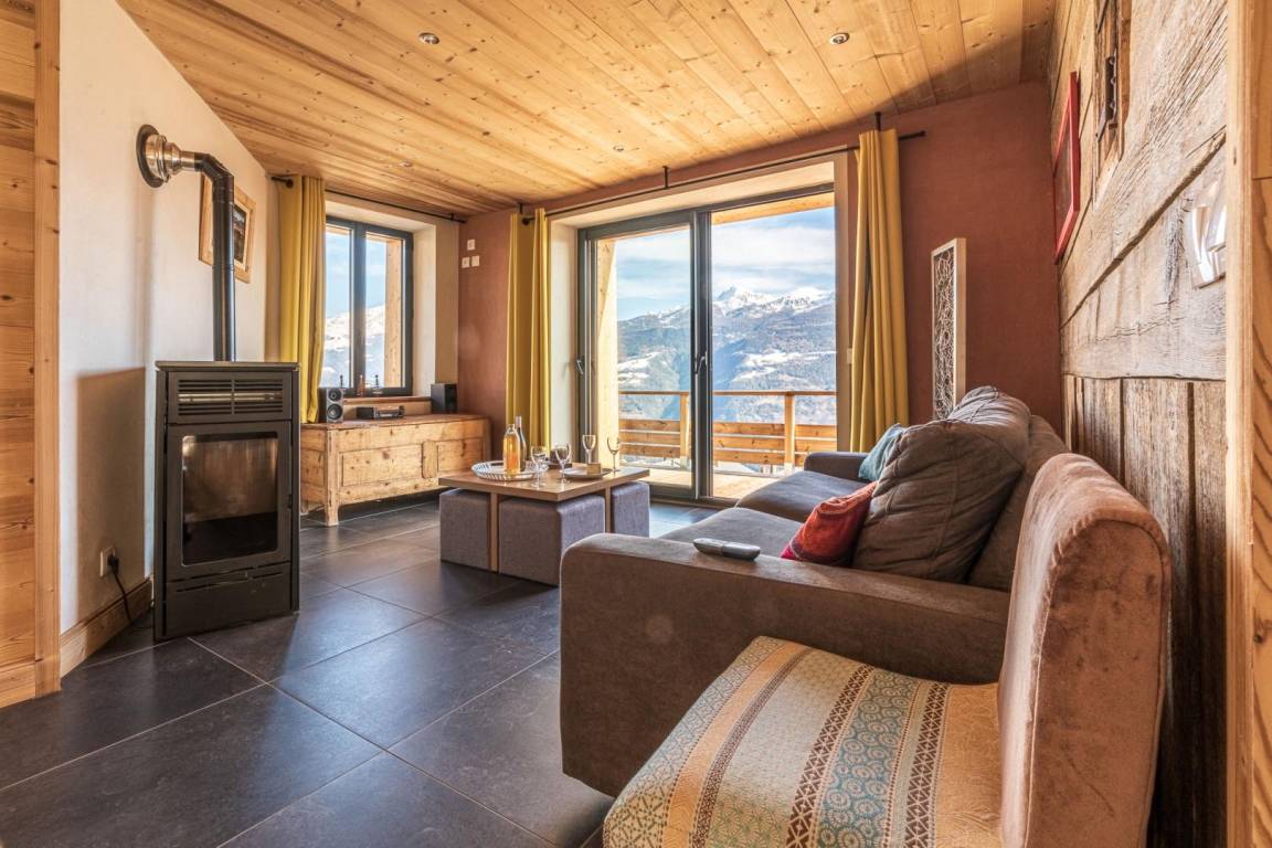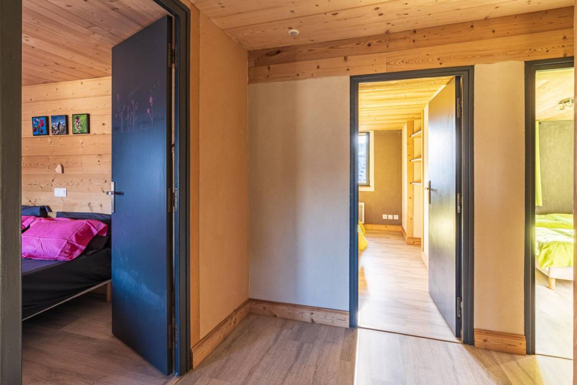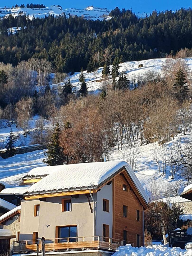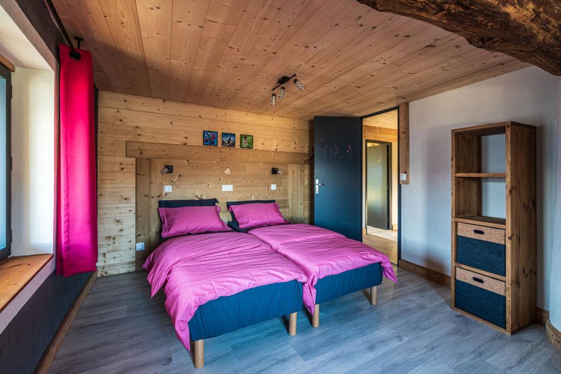 Einfamilienhaus auf 2 Ebenen umfasst im Erdgeschoss: eine Eingangshalle, ein Wohnzimmer mit Pelletofen (manuell aufladen) und im Wohnzimmer Küche geht auf 2 Terrassen, ein Bad (begehbare Dusche), separates WC. 1. Stock: 3 Schlafzimmer (2 Einzelbetten 80 x 200 cm kombinierbar zu 1 Doppelbett 160 x 200 cm / 2 Einzelbetten 80 x 190 cm kombinierbar zu 1 Doppelbett 160 x 190 cm / 2 Einzelbetten 90 x 190 cm), ein Badezimmer ( ebenerdiger Dusche), separates WC. Private Parkplätze (1 vor der Hütte und in der Nähe). Zugang von außen zur Waschmaschine, die sich in einem Keller im Untergeschoss befindet.