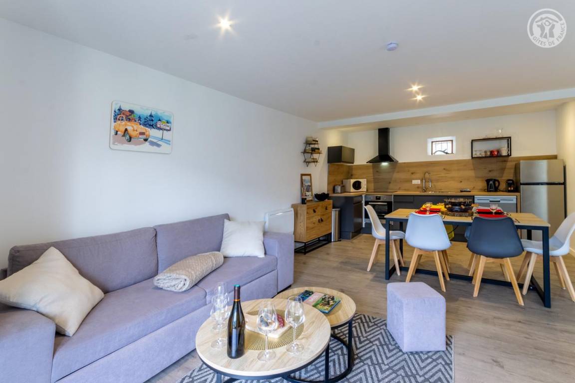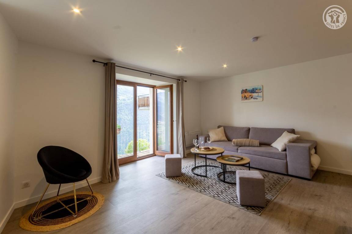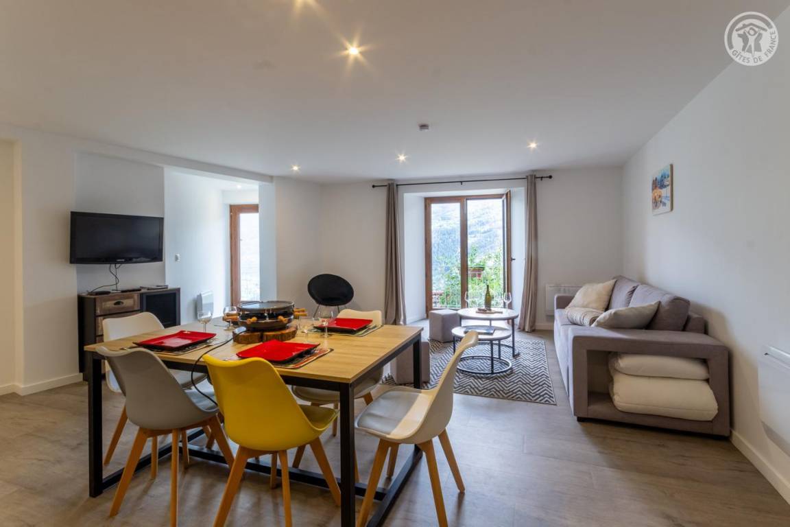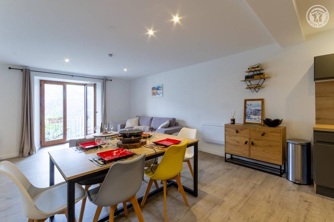 Komplett renovierte Wohnung im Herzen des charmanten Weilers Tessen. Geräumige und helle Zimmer mit atemberaubender Aussicht auf die Berge von La Plagne. Warme und moderne Atmosphäre, geschmackvolle Dekoration.