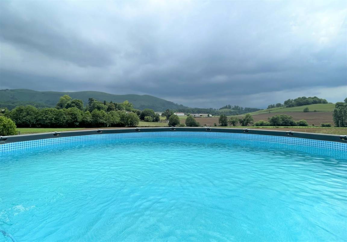 Auf der Rückseite steht Ihnen das ganze Grundstück offen, mit Blick auf die Wiesen und die schöne Aussicht auf die Berge. Privater oberirdischer Swimmingpool bei der Gîte, geöffnet von Juni bis September.