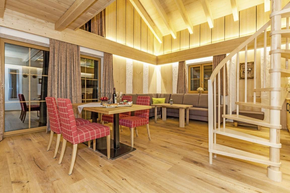 Das Pool-Chalet hat eine Wohnfläche von 145m², es verfügt über einen Wohnraum mit voll ausgestatteter Küche, ein Zirbenholz-Schlafzimmer im Parterre, ein großes Badezimmer mit DU/WC, ein zusätzliches Schlafzimmer mit Doppel-Wasserbett im 1. Stock mit Balkon, DU/WC, eine gemütliche Galerie mit Kuschelbett, eine private Sauna und einen privaten, ganzjährig mit bis zu 40°beheizten Außen-Whirlpool.
