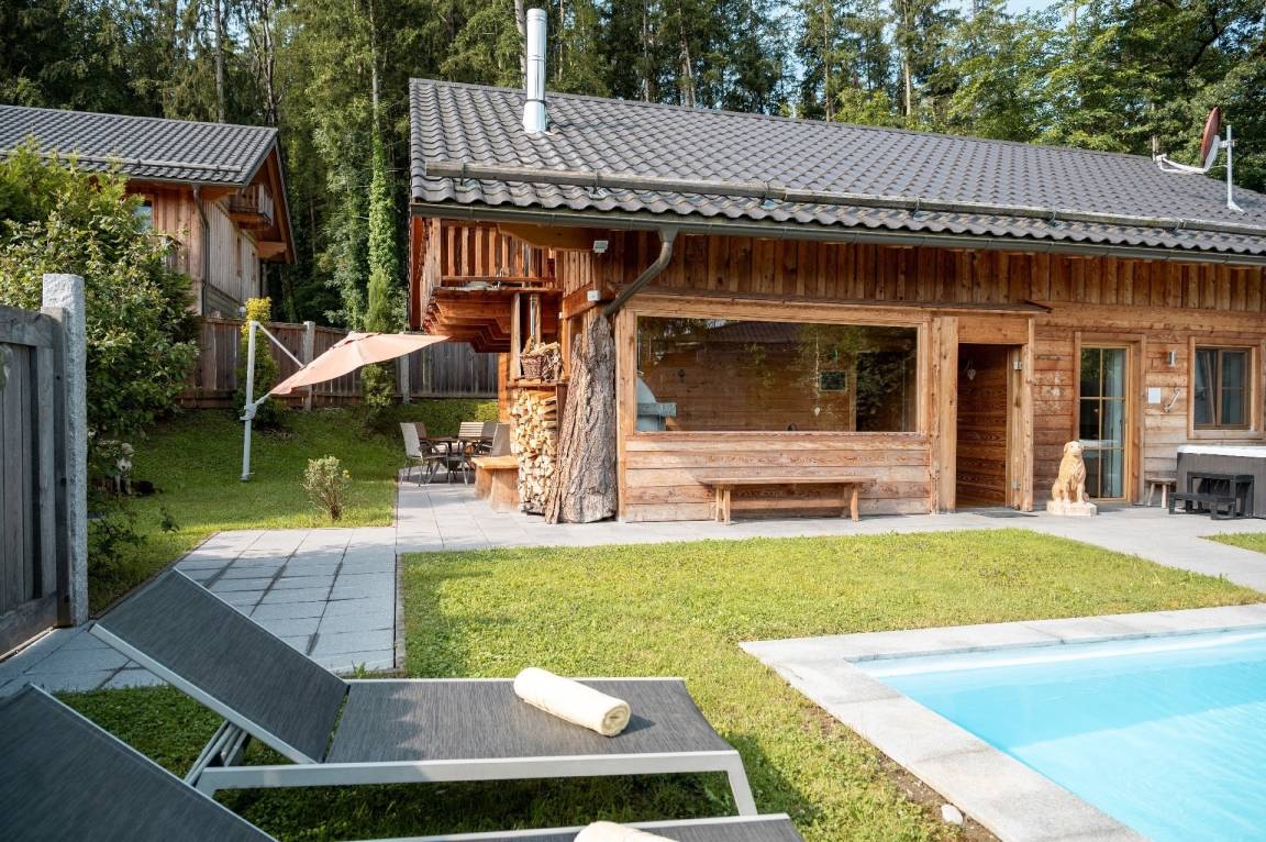 Das Besondere an unserem Pool-Chalet ist ein ganzjährig mit 28° beheizter und privater Außenpool nur für Sie alleine im eingezäunten Garten!