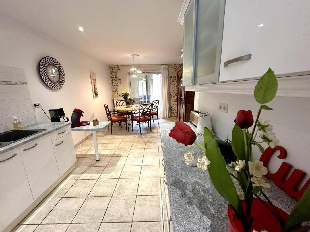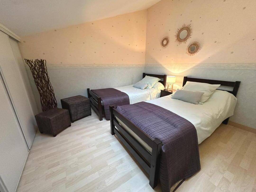 „Bon agencement de l'ensemble, très fonctionnel, très pragmatique. 2 belles salles de bain à l'étage, mais un wc dans la deuxième salle de bain serait un plus pour ne pas avoir à descendre au RDC...Sinon des belles chambres, bien aérées, bien ventilées. Une bonne luminosité. Des restaurants, boulangeries et commerces à proximité, accessible à pied. Une petite remarque: Le canapé dans le séjour était pour nous (personnes âgées) trop profond et trop bas. Un beau gîte, à recommander. Cordialement,“