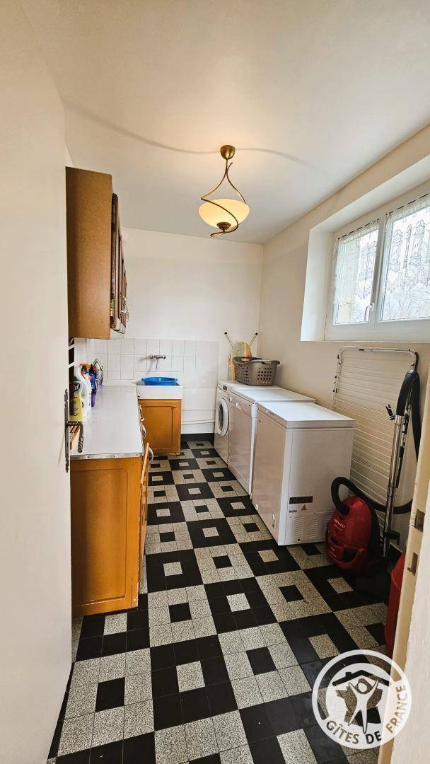 Auf der anderen Seite des Flurs finden Sie eine geräumige Küche mit Waschküche, die komplett ausgestattet ist, damit Sie während Ihres Aufenthalts köstliche Mahlzeiten zubereiten können.