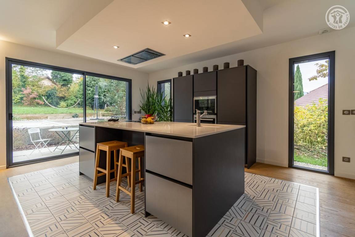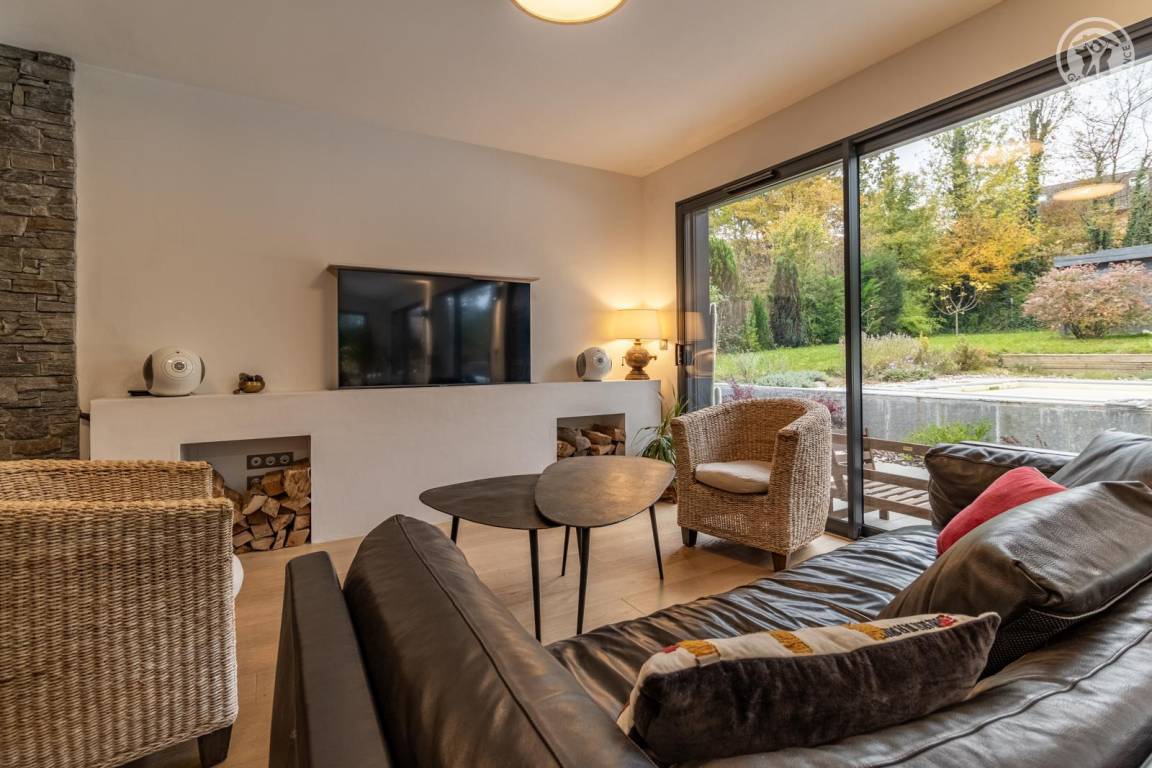 Erstklassige Lage für dieses von einem Architekten entworfene Haus im Herzen einer ruhigen Wohngegend auf den Höhen von Aix les Bains. Es bietet ein schönes, lichtdurchflutetes Wohnzimmer mit Zugang zum Park des Anwesens und seinem beheizten Außenpool sowie großartige Annehmlichkeiten: geräumige Zimmer, zwei geräumige Suiten, eine Bibliothek als Herzstück, eine voll ausgestattete Küche, einen hübsch eingerichteten Garten zum Entspannen, reversible Heizfläche, alles inklusive... Ein angenehmer Kokon, nur einen Steinwurf vom Stadtzentrum von Aix les Bains (2 km) und nicht weit von Chambéry entfernt.