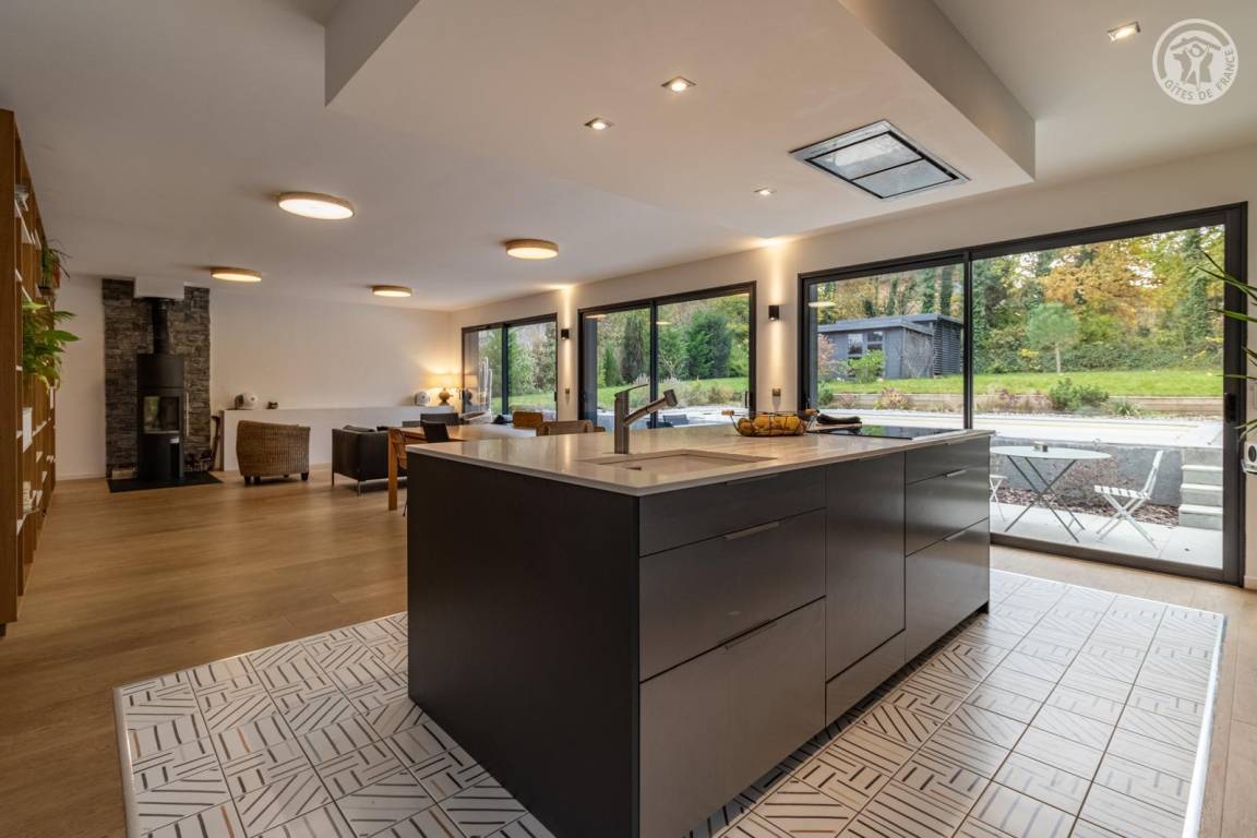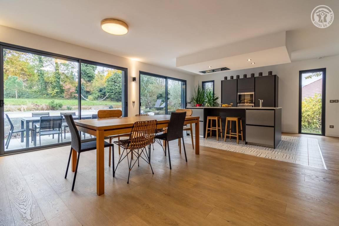 Freistehendes Haus aus dem Jahr 2019 mit Park und beheiztem Salz-Außenpool (von Mai bis September). Auf einer Ebene (1 Stufe zum Eingang): Eingang, separates japanisches WC, große Wohnküche, Speisekammer und Waschküche, 1 Suite mit geschlossenem Badezimmer (Dusche), ein Ankleidezimmer und ein Schlafzimmer (1 Doppelbett 160x200). cm), 1 Suite mit geschlossenem Badezimmer (Badewanne) und einem Schlafzimmer (1 Doppelbett 160x200 cm), 1 Schlafzimmer (1 Doppelbett Personen 160x200 cm). Carport für 2 Autos, gepflasterter Innenhof, großer angelegter Garten mit Kohlenbecken, Poolhaus (Fahrrad- und Skiraum), Ladestation für Fahrzeuge und Elektrofahrräder, Hängematte. Reversible Fußbodenheizung. Alles inklusive (Bettwäsche, Handtücher, Endreinigung).