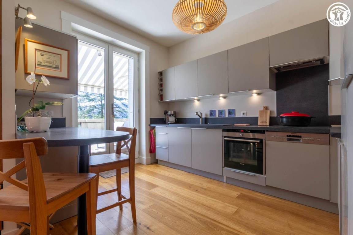 In einem prächtigen Gebäude auf den ersten Hügeln von Aix-les-Bains empfängt Sie heute der ehemalige Palast Mirabeau, der zu Beginn des 20. Jahrhunderts erbaut wurde, mit einem herrlichen Blick auf den Park und den Lac de Bourget. Nur einen Steinwurf von den Thermen der Stadt entfernt, ist das Apartment ideal für Besucher, die Ruhe und Erholung suchen. In der Nähe des Stadtzentrums. Helle und schön eingerichtete Wohnung.